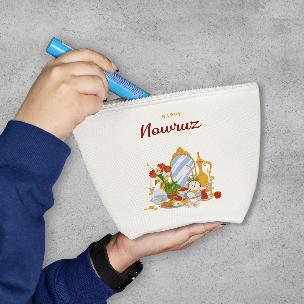 زیبایی در کنار کارایی، می‌تواند بهترین همراه برای وسایل روزمره باشد. در طراحی کیف لوازم آرایش خندالو طرح نوروز مبارک این اصل در نظر گرفته شده تا محصولی شیک، کاربردی و بادوام در اختیار شما باشد. این کیف‌ها از پارچه‌ی هازان مقاوم ساخته شده‌اند که علاوه بر ظاهر زیبا، استحکام بالایی نیز دارد. ابعاد کیف لوازم آرایش خندالو طرح نوروز مبارک ۲۲×۱۶ سانتی‌متر است و طراحی کف پاکتی ۸ سانتی‌متری آن، باعث می‌شود فضای بیشتری برای وسایل خود داشته باشید و فرم کیف بهتر حفظ شود. برای افزایش دوام و استحکام، داخل آن آسترکشی شده است. چاپ روی کیف به‌صورت دیجیتال و باکیفیت بالا انجام شده که باعث دوام و ماندگاری طرح‌ها می‌شود. این محصول کاملاً قابل شستشو است و می‌توانید بدون نگرانی از تغییر رنگ یا آسیب‌دیدگی، آن را هم با دست و هم با ماشین لباسشویی بشویید. یکی دیگر از ویژگی‌های کیف لوازم آرایش خندالو طرح نوروز مبارک، بسته‌بندی شیک و زیبا آن است که آن را به گزینه‌ای ایده‌آل برای هدیه دادن تبدیل می‌کند. این کیف نه‌تنها برای نگهداری لوازم آرایشی و بهداشتی، بلکه برای سایر وسایل ضروری نیز مناسب است. محصولی که در کنار کاربردی بودن، به سبک زندگی شما زیبایی و نظم می‌بخشد. کیف لوازم آرایش خندالو، همراهی زیبا و ماندگار برای شما!