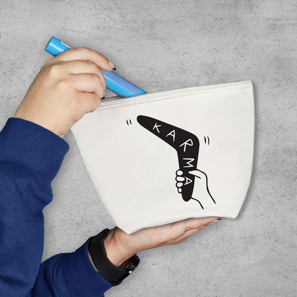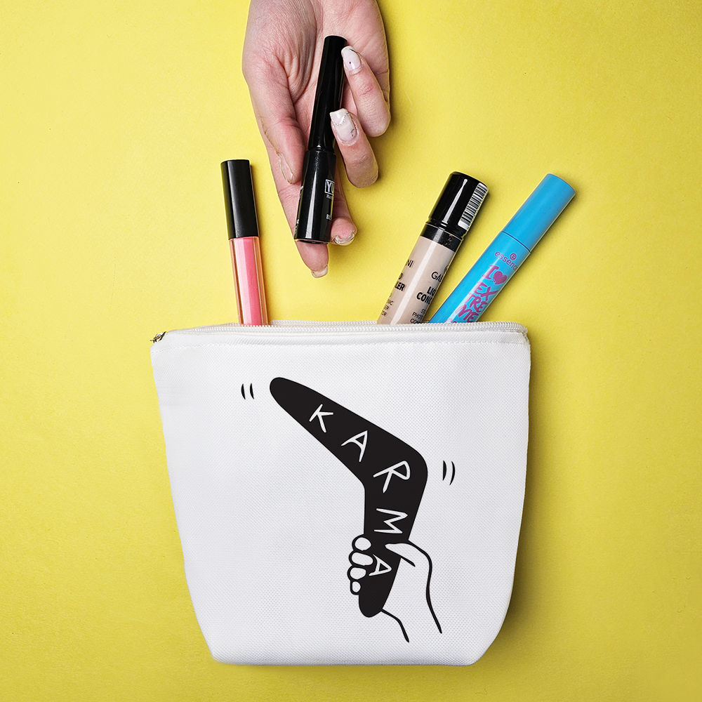 زیبایی در کنار کارایی، می‌تواند بهترین همراه برای وسایل روزمره باشد. در طراحی کیف لوازم آرایش خندالو طرح کارما این اصل در نظر گرفته شده تا محصولی شیک، کاربردی و بادوام در اختیار شما باشد. این کیف‌ها از پارچه‌ی هازان مقاوم ساخته شده‌اند که علاوه بر ظاهر زیبا، استحکام بالایی نیز دارد. ابعاد کیف لوازم آرایش خندالو طرح کارما ۲۲×۱۶ سانتی‌متر است و طراحی کف پاکتی ۸ سانتی‌متری آن، باعث می‌شود فضای بیشتری برای وسایل خود داشته باشید و فرم کیف بهتر حفظ شود. برای افزایش دوام و استحکام، داخل آن آسترکشی شده است. چاپ روی کیف به‌صورت دیجیتال و باکیفیت بالا انجام شده که باعث دوام و ماندگاری طرح‌ها می‌شود. این محصول کاملاً قابل شستشو است و می‌توانید بدون نگرانی از تغییر رنگ یا آسیب‌دیدگی، آن را هم با دست و هم با ماشین لباسشویی بشویید. یکی دیگر از ویژگی‌های کیف لوازم آرایش خندالو طرح کارما، بسته‌بندی شیک و زیبا آن است که آن را به گزینه‌ای ایده‌آل برای هدیه دادن تبدیل می‌کند. این کیف نه‌تنها برای نگهداری لوازم آرایشی و بهداشتی، بلکه برای سایر وسایل ضروری نیز مناسب است. محصولی که در کنار کاربردی بودن، به سبک زندگی شما زیبایی و نظم می‌بخشد. کیف لوازم آرایش خندالو، همراهی زیبا و ماندگار برای شما!