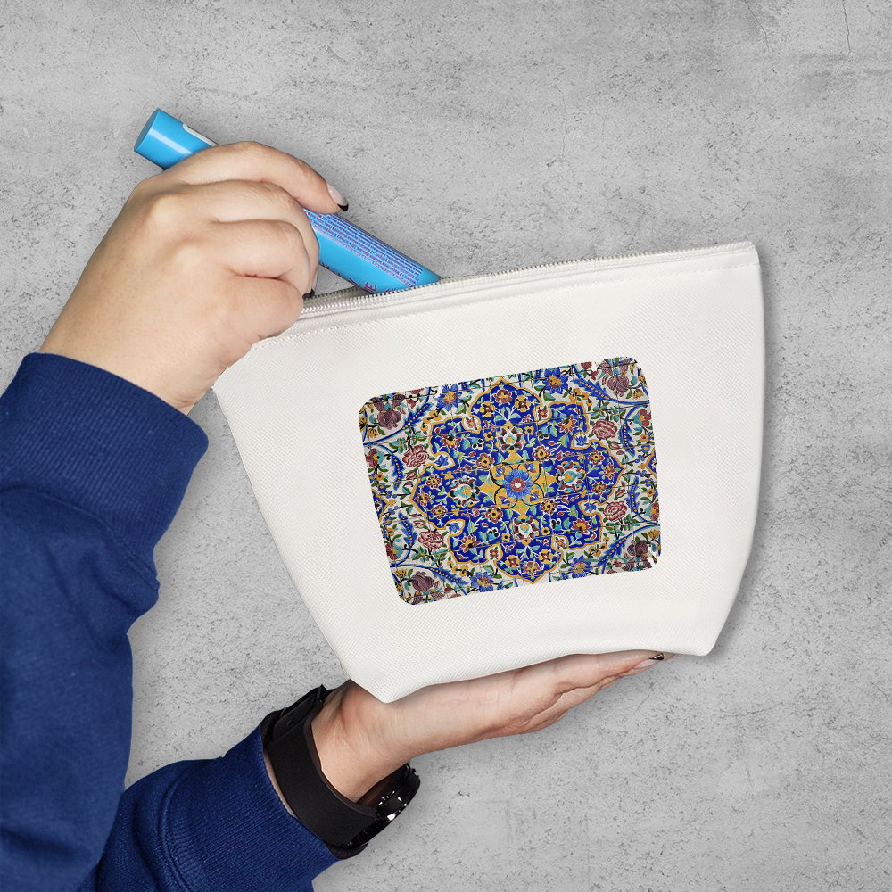 زیبایی در کنار کارایی، می‌تواند بهترین همراه برای وسایل روزمره باشد. در طراحی کیف لوازم آرایش خندالو طرح کاشی این اصل در نظر گرفته شده تا محصولی شیک، کاربردی و بادوام در اختیار شما باشد. این کیف‌ها از پارچه‌ی هازان مقاوم ساخته شده‌اند که علاوه بر ظاهر زیبا، استحکام بالایی نیز دارد. ابعاد کیف لوازم آرایش خندالو طرح کاشی ۲۲×۱۶ سانتی‌متر است و طراحی کف پاکتی ۸ سانتی‌متری آن، باعث می‌شود فضای بیشتری برای وسایل خود داشته باشید و فرم کیف بهتر حفظ شود. برای افزایش دوام و استحکام، داخل آن آسترکشی شده است. چاپ روی کیف به‌صورت دیجیتال و باکیفیت بالا انجام شده که باعث دوام و ماندگاری طرح‌ها می‌شود. این محصول کاملاً قابل شستشو است و می‌توانید بدون نگرانی از تغییر رنگ یا آسیب‌دیدگی، آن را هم با دست و هم با ماشین لباسشویی بشویید. یکی دیگر از ویژگی‌های کیف لوازم آرایش خندالو طرح کاشی، بسته‌بندی شیک و زیبا آن است که آن را به گزینه‌ای ایده‌آل برای هدیه دادن تبدیل می‌کند. این کیف نه‌تنها برای نگهداری لوازم آرایشی و بهداشتی، بلکه برای سایر وسایل ضروری نیز مناسب است. محصولی که در کنار کاربردی بودن، به سبک زندگی شما زیبایی و نظم می‌بخشد. کیف لوازم آرایش خندالو، همراهی زیبا و ماندگار برای شما!