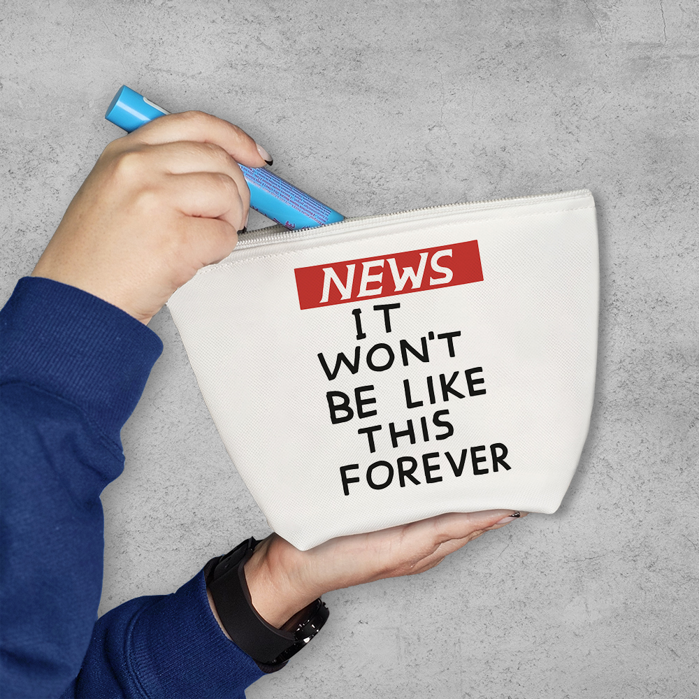 زیبایی در کنار کارایی، میتواند بهترین همراه برای وسایل روزمره باشد. در طراحی کیف لوازم آرایش خندالو طرح News It Won’t Be Like This Forever این اصل در نظر گرفته شده تا محصولی شیک، کاربردی و بادوام در اختیار شما باشد. این کیفها از پارچهی هازان مقاوم ساخته شدهاند که علاوه بر ظاهر زیبا، استحکام بالایی نیز دارد. ابعاد کیف لوازم آرایش خندالو طرح News It Won’t Be Like This Forever ۲۲×۱۶ سانتیمتر است و طراحی کف پاکتی ۸ سانتیمتری آن، باعث میشود فضای بیشتری برای وسایل خود داشته باشید و فرم کیف بهتر حفظ شود. برای افزایش دوام و استحکام، داخل آن آسترکشی شده است. چاپ روی کیف بهصورت دیجیتال و باکیفیت بالا انجام شده که باعث دوام و ماندگاری طرحها میشود. این محصول کاملاً قابل شستشو است و میتوانید بدون نگرانی از تغییر رنگ یا آسیبدیدگی، آن را هم با دست و هم با ماشین لباسشویی بشویید. یکی دیگر از ویژگیهای کیف لوازم آرایش خندالو طرح News It Won’t Be Like This Forever، بستهبندی شیک و زیبا آن است که آن را به گزینهای ایدهآل برای هدیه دادن تبدیل میکند. این کیف نهتنها برای نگهداری لوازم آرایشی و بهداشتی، بلکه برای سایر وسایل ضروری نیز مناسب است. محصولی که در کنار کاربردی بودن، به سبک زندگی شما زیبایی و نظم میبخشد. کیف لوازم آرایش خندالو، همراهی زیبا و ماندگار برای شما!