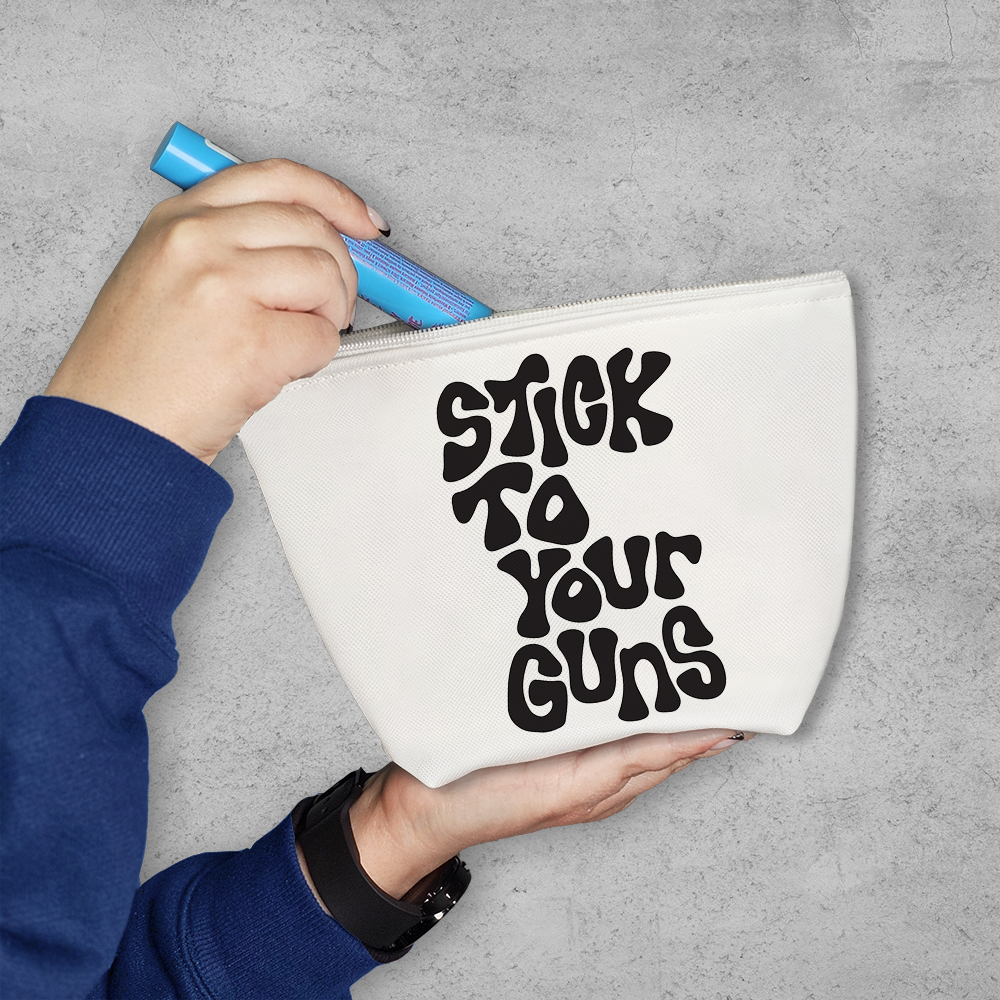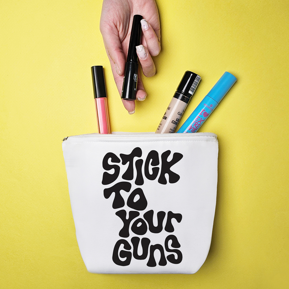 زیبایی در کنار کارایی، میتواند بهترین همراه برای وسایل روزمره باشد. در طراحی کیف لوازم آرایش خندالو طرح Stick To Your Guns این اصل در نظر گرفته شده تا محصولی شیک، کاربردی و بادوام در اختیار شما باشد. این کیفها از پارچهی هازان مقاوم ساخته شدهاند که علاوه بر ظاهر زیبا، استحکام بالایی نیز دارد. ابعاد کیف لوازم آرایش خندالو طرح Stick To Your Guns ۲۲×۱۶ سانتیمتر است و طراحی کف پاکتی ۸ سانتیمتری آن، باعث میشود فضای بیشتری برای وسایل خود داشته باشید و فرم کیف بهتر حفظ شود. برای افزایش دوام و استحکام، داخل آن آسترکشی شده است. چاپ روی کیف بهصورت دیجیتال و باکیفیت بالا انجام شده که باعث دوام و ماندگاری طرحها میشود. این محصول کاملاً قابل شستشو است و میتوانید بدون نگرانی از تغییر رنگ یا آسیبدیدگی، آن را هم با دست و هم با ماشین لباسشویی بشویید. یکی دیگر از ویژگیهای کیف لوازم آرایش خندالو طرح Stick To Your Guns، بستهبندی شیک و زیبا آن است که آن را به گزینهای ایدهآل برای هدیه دادن تبدیل میکند. این کیف نهتنها برای نگهداری لوازم آرایشی و بهداشتی، بلکه برای سایر وسایل ضروری نیز مناسب است. محصولی که در کنار کاربردی بودن، به سبک زندگی شما زیبایی و نظم میبخشد. کیف لوازم آرایش خندالو، همراهی زیبا و ماندگار برای شما!