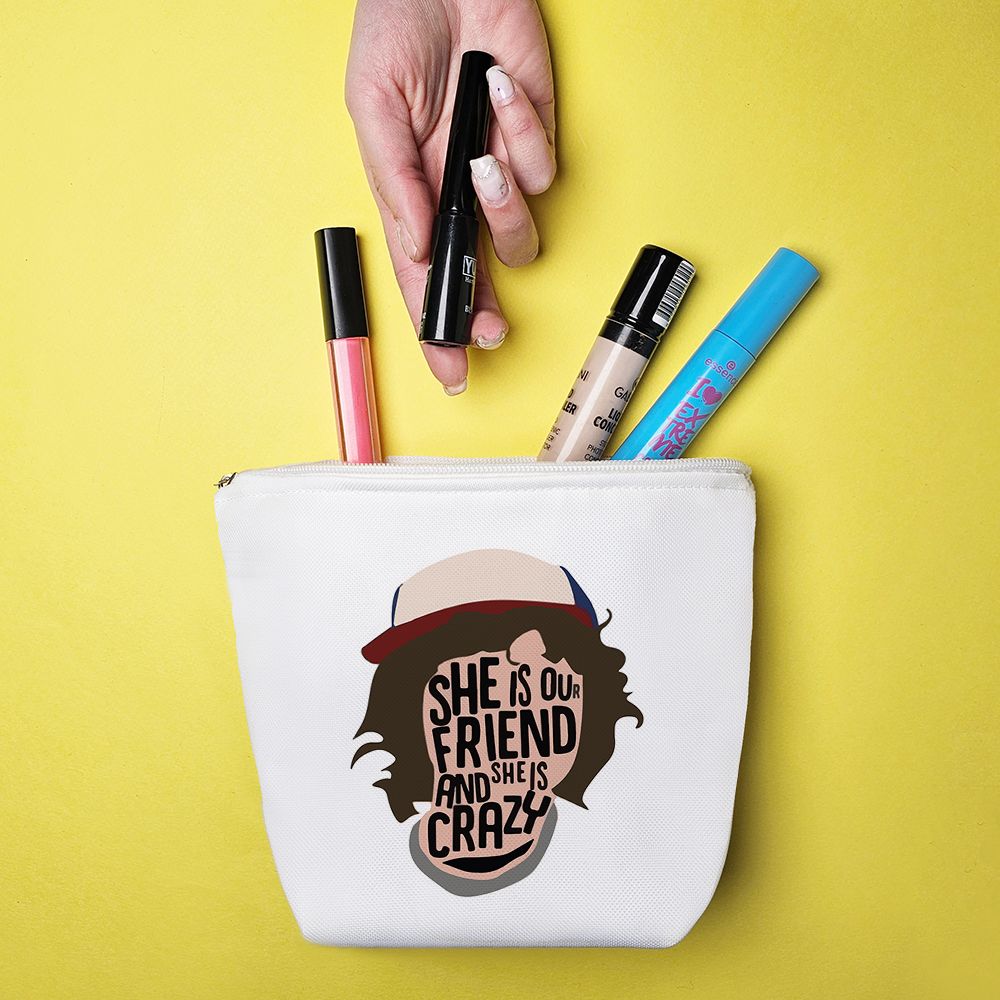 زیبایی در کنار کارایی، می‌تواند بهترین همراه برای وسایل روزمره باشد. در طراحی کیف لوازم آرایش خندالو طرح (Stranger Things) داستین این اصل در نظر گرفته شده تا محصولی شیک، کاربردی و بادوام در اختیار شما باشد. این کیف‌ها از پارچه‌ی هازان مقاوم ساخته شده‌اند که علاوه بر ظاهر زیبا، استحکام بالایی نیز دارد. ابعاد کیف لوازم آرایش خندالو طرح (Stranger Things) داستین ۲۲×۱۶ سانتی‌متر است و طراحی کف پاکتی ۸ سانتی‌متری آن، باعث می‌شود فضای بیشتری برای وسایل خود داشته باشید و فرم کیف بهتر حفظ شود. برای افزایش دوام و استحکام، داخل آن آسترکشی شده است. چاپ روی کیف به‌صورت دیجیتال و باکیفیت بالا انجام شده که باعث دوام و ماندگاری طرح‌ها می‌شود. این محصول کاملاً قابل شستشو است و می‌توانید بدون نگرانی از تغییر رنگ یا آسیب‌دیدگی، آن را هم با دست و هم با ماشین لباسشویی بشویید. یکی دیگر از ویژگی‌های کیف لوازم آرایش خندالو طرح (Stranger Things) داستین، بسته‌بندی شیک و زیبا آن است که آن را به گزینه‌ای ایده‌آل برای هدیه دادن تبدیل می‌کند. این کیف نه‌تنها برای نگهداری لوازم آرایشی و بهداشتی، بلکه برای سایر وسایل ضروری نیز مناسب است. محصولی که در کنار کاربردی بودن، به سبک زندگی شما زیبایی و نظم می‌بخشد. کیف لوازم آرایش خندالو، همراهی زیبا و ماندگار برای شما!