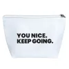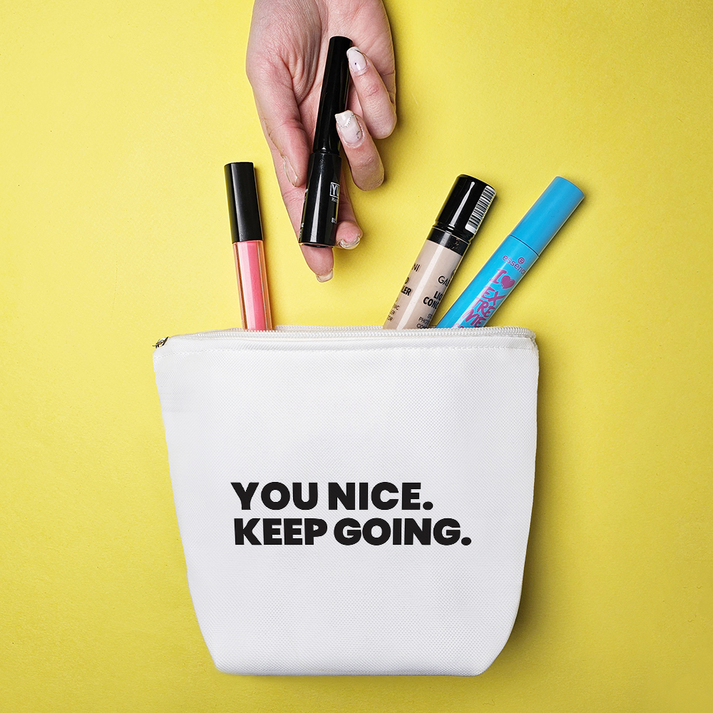 زیبایی در کنار کارایی، می‌تواند بهترین همراه برای وسایل روزمره باشد. در طراحی کیف لوازم آرایش خندالو طرح You Nice Keep Going این اصل در نظر گرفته شده تا محصولی شیک، کاربردی و بادوام در اختیار شما باشد. این کیف‌ها از پارچه‌ی هازان مقاوم ساخته شده‌اند که علاوه بر ظاهر زیبا، استحکام بالایی نیز دارد. ابعاد کیف لوازم آرایش خندالو طرح You Nice Keep Going ۲۲×۱۶ سانتی‌متر است و طراحی کف پاکتی ۸ سانتی‌متری آن، باعث می‌شود فضای بیشتری برای وسایل خود داشته باشید و فرم کیف بهتر حفظ شود. برای افزایش دوام و استحکام، داخل آن آسترکشی شده است. چاپ روی کیف به‌صورت دیجیتال و باکیفیت بالا انجام شده که باعث دوام و ماندگاری طرح‌ها می‌شود. این محصول کاملاً قابل شستشو است و می‌توانید بدون نگرانی از تغییر رنگ یا آسیب‌دیدگی، آن را هم با دست و هم با ماشین لباسشویی بشویید. یکی دیگر از ویژگی‌های کیف لوازم آرایش خندالو طرح You Nice Keep Going، بسته‌بندی شیک و زیبا آن است که آن را به گزینه‌ای ایده‌آل برای هدیه دادن تبدیل می‌کند. این کیف نه‌تنها برای نگهداری لوازم آرایشی و بهداشتی، بلکه برای سایر وسایل ضروری نیز مناسب است. محصولی که در کنار کاربردی بودن، به سبک زندگی شما زیبایی و نظم می‌بخشد. کیف لوازم آرایش خندالو، همراهی زیبا و ماندگار برای شما!