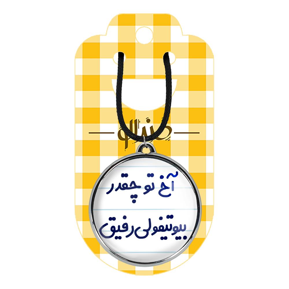 گردنبند خندالو طرح آخ تو چقدر بیوتیفولی رفیق ، محصولی جدید و جذاب است که بصورت دو طرفه بوده، و در هر یک از طرفین گردنبند، طرح متفاوتی از یک موضوع چاپ شده است. دور پلاک گردنبند را، رینگی از جنس کروم نقره ای پوشانده که رنگ آن ثابت بوده و باعث هرچه زیباتر شدن گردنبند می شود. روکش براق روی گردنبند، مقاومت بالایی دارد و در مقابل عرق بدن با دوام بوده و با رطوبت های کم، به طرح آسیبی وارد نمی شود. چاپ گردنبند خندالو طرح آخ تو چقدر بیوتیفولی رفیق بوسیله بهترین دستگاه های چاپ دیجیتال صورت می گیرد و طرح با شفافیتی مثال زدنی بر روی گردنبند نقش می بندد. جنس بند گردنبند ها نیز تولید شده از چرم صنعتی ست و با ضخامت و مقاومت بالایی که دارد آسیبی نمی بیند. زنجیر بوسیله قفل آبکاری شده به رنگ نقره ای، قابل باز و بسته شدن است که استفاده از آن را راحت تر می کند. همچنین بسته بندی مینیمال و منحصر به فرد خندالو، گردنبند ها را تبدیل به هدیه ای جذاب می کند که با قیمت مناسب و تنوع طرحی بسیار بالایی که از همه موضوعات دارد، میتواند برای هر سلیقه ای خوشحال کننده باشد.