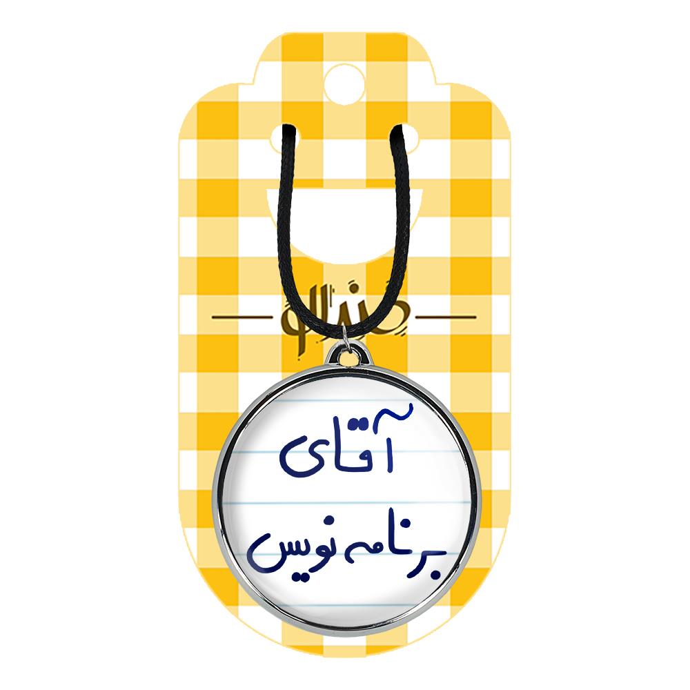گردنبند خندالو طرح آقای برنامه نویس ، محصولی جدید و جذاب است که بصورت دو طرفه بوده، و در هر یک از طرفین گردنبند، طرح متفاوتی از یک موضوع چاپ شده است. دور پلاک گردنبند را، رینگی از جنس کروم نقره ای پوشانده که رنگ آن ثابت بوده و باعث هرچه زیباتر شدن گردنبند می شود. روکش براق روی گردنبند، مقاومت بالایی دارد و در مقابل عرق بدن با دوام بوده و با رطوبت های کم، به طرح آسیبی وارد نمی شود. چاپ گردنبند خندالو طرح آقای برنامه نویس بوسیله بهترین دستگاه های چاپ دیجیتال صورت می گیرد و طرح با شفافیتی مثال زدنی بر روی گردنبند نقش می بندد. جنس بند گردنبند ها نیز تولید شده از چرم صنعتی ست و با ضخامت و مقاومت بالایی که دارد آسیبی نمی بیند. زنجیر بوسیله قفل آبکاری شده به رنگ نقره ای، قابل باز و بسته شدن است که استفاده از آن را راحت تر می کند. همچنین بسته بندی مینیمال و منحصر به فرد خندالو، گردنبند ها را تبدیل به هدیه ای جذاب می کند که با قیمت مناسب و تنوع طرحی بسیار بالایی که از همه موضوعات دارد، میتواند برای هر سلیقه ای خوشحال کننده باشد.