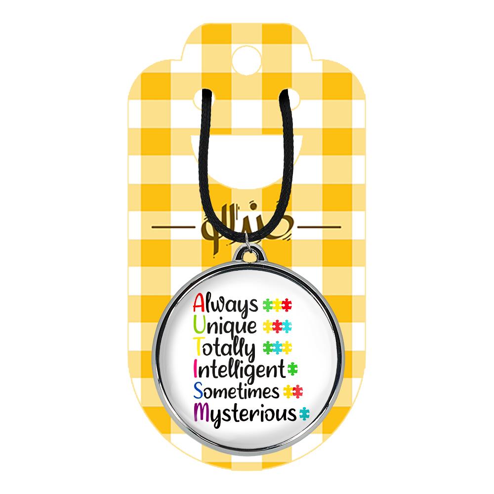 گردنبند خندالو طرح اتیسم Autism، محصولی جدید و جذاب است که بصورت دو طرفه بوده، و در هر یک از طرفین گردنبند، طرح متفاوتی از یک موضوع چاپ شده است. دور پلاک گردنبند را، رینگی از جنس کروم نقره ای پوشانده که رنگ آن ثابت بوده و باعث هرچه زیباتر شدن گردنبند می شود. روکش براق روی گردنبند، مقاومت بالایی دارد و در مقابل عرق بدن با دوام بوده و با رطوبت های کم، به طرح آسیبی وارد نمی شود. چاپ گردنبند خندالو طرح اتیسم Autism بوسیله بهترین دستگاه های چاپ دیجیتال صورت می گیرد و طرح با شفافیتی مثال زدنی بر روی گردنبند نقش می بندد.