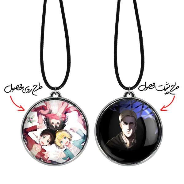 گردنبند خندالو طرح ارن و میکاسا و آرمین انیمه اتک آن تایتان Attack on Titan ، محصولی جدید و جذاب است که بصورت دو طرفه بوده، و در هر یک از طرفین گردنبند، طرح متفاوتی از یک موضوع چاپ شده است. دور پلاک گردنبند را، رینگی از جنس کروم نقره ای پوشانده که رنگ آن ثابت بوده و باعث هرچه زیباتر شدن گردنبند می شود. روکش براق روی گردنبند، مقاومت بالایی دارد و در مقابل عرق بدن با دوام بوده و با رطوبت های کم، به طرح آسیبی وارد نمی شود. چاپ گردنبند خندالو طرح ارن و میکاسا و آرمین انیمه اتک آن تایتان Attack on Titan بوسیله بهترین دستگاه های چاپ دیجیتال صورت می گیرد و طرح با شفافیتی مثال زدنی بر روی گردنبند نقش می بندد. جنس بند گردنبند ها نیز تولید شده از چرم صنعتی ست و با ضخامت و مقاومت بالایی که دارد آسیبی نمی بیند. زنجیر بوسیله قفل آبکاری شده به رنگ نقره ای، قابل باز و بسته شدن است که استفاده از آن را راحت تر می کند. همچنین بسته بندی مینیمال و منحصر به فرد خندالو، گردنبند ها را تبدیل به هدیه ای جذاب می کند که با قیمت مناسب و تنوع طرحی بسیار بالایی که از همه موضوعات دارد، میتواند برای هر سلیقه ای خوشحال کننده باشد.