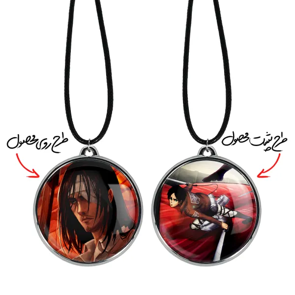 گردنبند خندالو طرح ارن یگر انیمه اتک آن تایتان Attack on Titan ، محصولی جدید و جذاب است که بصورت دو طرفه بوده، و در هر یک از طرفین گردنبند، طرح متفاوتی از یک موضوع چاپ شده است. دور پلاک گردنبند را، رینگی از جنس کروم نقره ای پوشانده که رنگ آن ثابت بوده و باعث هرچه زیباتر شدن گردنبند می شود. روکش براق روی گردنبند، مقاومت بالایی دارد و در مقابل عرق بدن با دوام بوده و با رطوبت های کم، به طرح آسیبی وارد نمی شود. چاپ گردنبند خندالو طرح ارن یگر انیمه اتک آن تایتان Attack on Titan بوسیله بهترین دستگاه های چاپ دیجیتال صورت می گیرد و طرح با شفافیتی مثال زدنی بر روی گردنبند نقش می بندد.