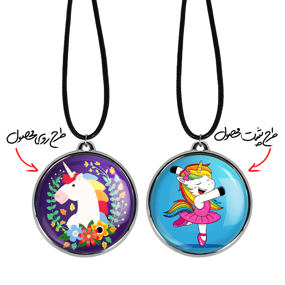 گردنبند خندالو طرح اسب تک شاخ یونیکورن ، محصولی جدید و جذاب است که بصورت دو طرفه بوده، و در هر یک از طرفین گردنبند، طرح متفاوتی از یک موضوع چاپ شده است. دور پلاک گردنبند را، رینگی از جنس کروم نقره ای پوشانده که رنگ آن ثابت بوده و باعث هرچه زیباتر شدن گردنبند می شود. روکش براق روی گردنبند، مقاومت بالایی دارد و در مقابل عرق بدن با دوام بوده و با رطوبت های کم، به طرح آسیبی وارد نمی شود. چاپ گردنبند خندالو طرح اسب تک شاخ یونیکورن بوسیله بهترین دستگاه های چاپ دیجیتال صورت می گیرد و طرح با شفافیتی مثال زدنی بر روی گردنبند نقش می بندد.