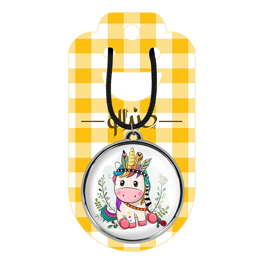 گردنبند خندالو طرح اسب تک شاخ یونیکورن ، محصولی جدید و جذاب است که بصورت دو طرفه بوده، و در هر یک از طرفین گردنبند، طرح متفاوتی از یک موضوع چاپ شده است. دور پلاک گردنبند را، رینگی از جنس کروم نقره ای پوشانده که رنگ آن ثابت بوده و باعث هرچه زیباتر شدن گردنبند می شود. روکش براق روی گردنبند، مقاومت بالایی دارد و در مقابل عرق بدن با دوام بوده و با رطوبت های کم، به طرح آسیبی وارد نمی شود. چاپ گردنبند خندالو طرح اسب تک شاخ یونیکورن بوسیله بهترین دستگاه های چاپ دیجیتال صورت می گیرد و طرح با شفافیتی مثال زدنی بر روی گردنبند نقش می بندد.