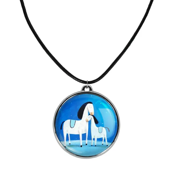 گردنبند خندالو طرح اسب ، محصولی جدید و جذاب است که بصورت دو طرفه بوده، و در هر یک از طرفین گردنبند، طرح متفاوتی از یک موضوع چاپ شده است. دور پلاک گردنبند را، رینگی از جنس کروم نقره ای پوشانده که رنگ آن ثابت بوده و باعث هرچه زیباتر شدن گردنبند می شود. روکش براق روی گردنبند، مقاومت بالایی دارد و در مقابل عرق بدن با دوام بوده و با رطوبت های کم، به طرح آسیبی وارد نمی شود. چاپ گردنبند خندالو طرح اسب بوسیله بهترین دستگاه های چاپ دیجیتال صورت می گیرد و طرح با شفافیتی مثال زدنی بر روی گردنبند نقش می بندد. جنس بند گردنبند ها نیز تولید شده از چرم صنعتی ست و با ضخامت و مقاومت بالایی که دارد آسیبی نمی بیند. زنجیر بوسیله قفل آبکاری شده به رنگ نقره ای، قابل باز و بسته شدن است که استفاده از آن را راحت تر می کند. همچنین بسته بندی مینیمال و منحصر به فرد خندالو، گردنبند ها را تبدیل به هدیه ای جذاب می کند که با قیمت مناسب و تنوع طرحی بسیار بالایی که از همه موضوعات دارد، میتواند برای هر سلیقه ای خوشحال کننده باشد.