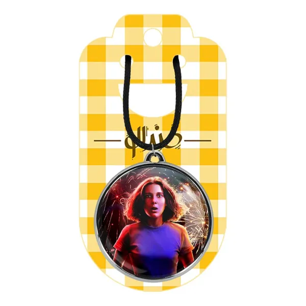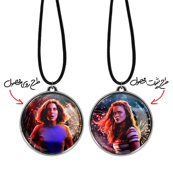 گردنبند خندالو طرح الون استرینجر تینگز Stranger Things ، محصولی جدید و جذاب است که بصورت دو طرفه بوده، و در هر یک از طرفین گردنبند، طرح متفاوتی از یک موضوع چاپ شده است. دور پلاک گردنبند را، رینگی از جنس کروم نقره ای پوشانده که رنگ آن ثابت بوده و باعث هرچه زیباتر شدن گردنبند می شود. روکش براق روی گردنبند، مقاومت بالایی دارد و در مقابل عرق بدن با دوام بوده و با رطوبت های کم، به طرح آسیبی وارد نمی شود. چاپ گردنبند خندالو طرح الون استرینجر تینگز Stranger Things بوسیله بهترین دستگاه های چاپ دیجیتال صورت می گیرد و طرح با شفافیتی مثال زدنی بر روی گردنبند نقش می بندد. جنس بند گردنبند ها نیز تولید شده از چرم صنعتی ست و با ضخامت و مقاومت بالایی که دارد آسیبی نمی بیند. زنجیر بوسیله قفل آبکاری شده به رنگ نقره ای، قابل باز و بسته شدن است که استفاده از آن را راحت تر می کند. همچنین بسته بندی مینیمال و منحصر به فرد خندالو، گردنبند ها را تبدیل به هدیه ای جذاب می کند که با قیمت مناسب و تنوع طرحی بسیار بالایی که از همه موضوعات دارد، میتواند برای هر سلیقه ای خوشحال کننده باشد.