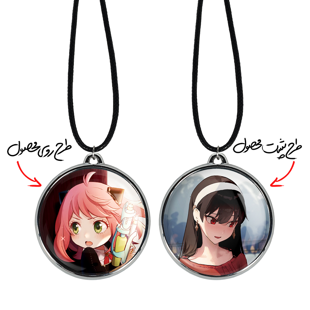گردنبند خندالو طرح انیا انیمه اسپای ایکس فمیلی Spy X Family ، محصولی جدید و جذاب است که بصورت دو طرفه بوده، و در هر یک از طرفین گردنبند، طرح متفاوتی از یک موضوع چاپ شده است. دور پلاک گردنبند را، رینگی از جنس کروم نقره ای پوشانده که رنگ آن ثابت بوده و باعث هرچه زیباتر شدن گردنبند می شود. روکش براق روی گردنبند، مقاومت بالایی دارد و در مقابل عرق بدن با دوام بوده و با رطوبت های کم، به طرح آسیبی وارد نمی شود. چاپ گردنبند خندالو طرح انیا انیمه اسپای ایکس فمیلی Spy X Family بوسیله بهترین دستگاه های چاپ دیجیتال صورت می گیرد و طرح با شفافیتی مثال زدنی بر روی گردنبند نقش می بندد.