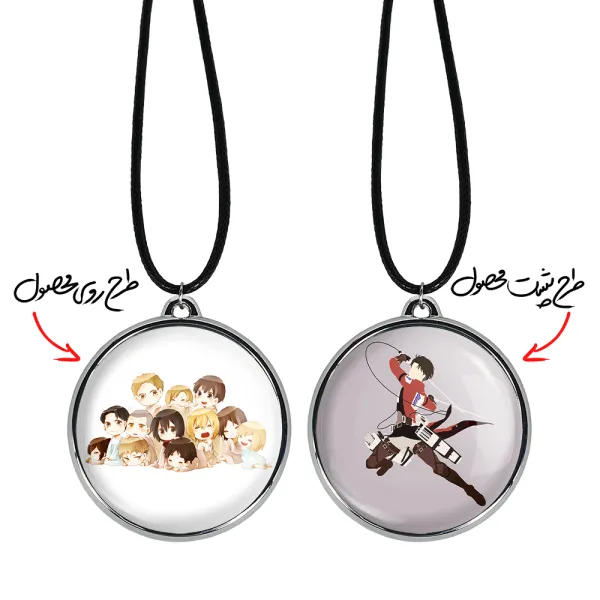 گردنبند خندالو طرح انیمه اتک آن تایتان Attack on Titan ، محصولی جدید و جذاب است که بصورت دو طرفه بوده، و در هر یک از طرفین گردنبند، طرح متفاوتی از یک موضوع چاپ شده است. دور پلاک گردنبند را، رینگی از جنس کروم نقره ای پوشانده که رنگ آن ثابت بوده و باعث هرچه زیباتر شدن گردنبند می شود. روکش براق روی گردنبند، مقاومت بالایی دارد و در مقابل عرق بدن با دوام بوده و با رطوبت های کم، به طرح آسیبی وارد نمی شود. چاپ گردنبند خندالو طرح انیمه اتک آن تایتان Attack on Titan بوسیله بهترین دستگاه های چاپ دیجیتال صورت می گیرد و طرح با شفافیتی مثال زدنی بر روی گردنبند نقش می بندد.