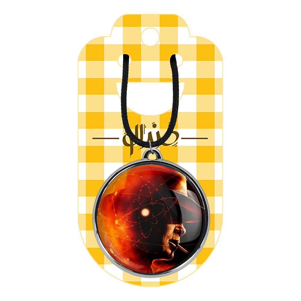 گردنبند خندالو طرح اوپنهایمر Oppenheimer، محصولی جدید و جذاب است که بصورت دو طرفه بوده، و در هر یک از طرفین گردنبند، طرح متفاوتی از یک موضوع چاپ شده است. دور پلاک گردنبند را، رینگی از جنس کروم نقره ای پوشانده که رنگ آن ثابت بوده و باعث هرچه زیباتر شدن گردنبند می شود. روکش براق روی گردنبند، مقاومت بالایی دارد و در مقابل عرق بدن با دوام بوده و با رطوبت های کم، به طرح آسیبی وارد نمی شود. چاپ گردنبند خندالو طرح اوپنهایمر Oppenheimer بوسیله بهترین دستگاه های چاپ دیجیتال صورت می گیرد و طرح با شفافیتی مثال زدنی بر روی گردنبند نقش می بندد.