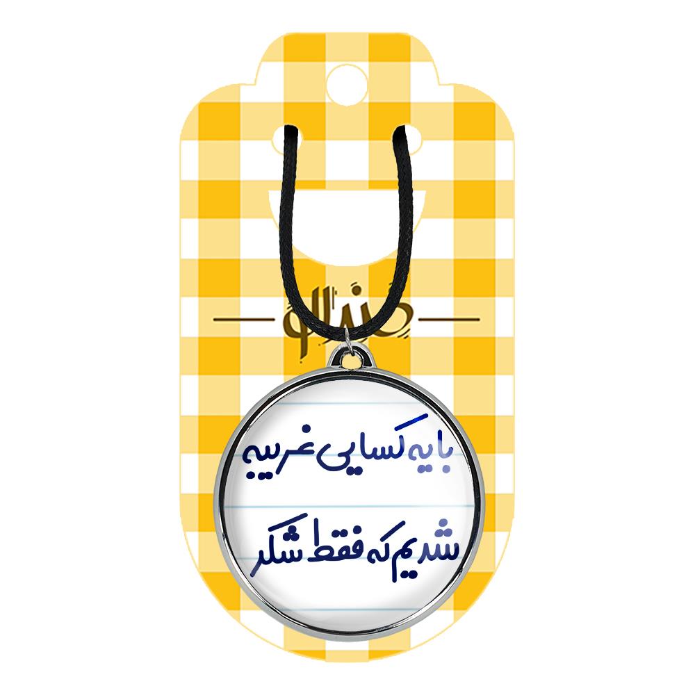 گردنبند خندالو طرح با یه کسایی غریبه شدیم که فقط شکر، محصولی جدید و جذاب است که بصورت دو طرفه بوده، و در هر یک از طرفین گردنبند، طرح متفاوتی از یک موضوع چاپ شده است. دور پلاک گردنبند را، رینگی از جنس کروم نقره ای پوشانده که رنگ آن ثابت بوده و باعث هرچه زیباتر شدن گردنبند می شود. روکش براق روی گردنبند، مقاومت بالایی دارد و در مقابل عرق بدن با دوام بوده و با رطوبت های کم، به طرح آسیبی وارد نمی شود. چاپ گردنبند خندالو طرح با یه کسایی غریبه شدیم که فقط شکر بوسیله بهترین دستگاه های چاپ دیجیتال صورت می گیرد و طرح با شفافیتی مثال زدنی بر روی گردنبند نقش می بندد. جنس بند گردنبند ها نیز تولید شده از چرم صنعتی ست و با ضخامت و مقاومت بالایی که دارد آسیبی نمی بیند. زنجیر بوسیله قفل آبکاری شده به رنگ نقره ای، قابل باز و بسته شدن است که استفاده از آن را راحت تر می کند. همچنین بسته بندی مینیمال و منحصر به فرد خندالو، گردنبند ها را تبدیل به هدیه ای جذاب می کند که با قیمت مناسب و تنوع طرحی بسیار بالایی که از همه موضوعات دارد، میتواند برای هر سلیقه ای خوشحال کننده باشد.