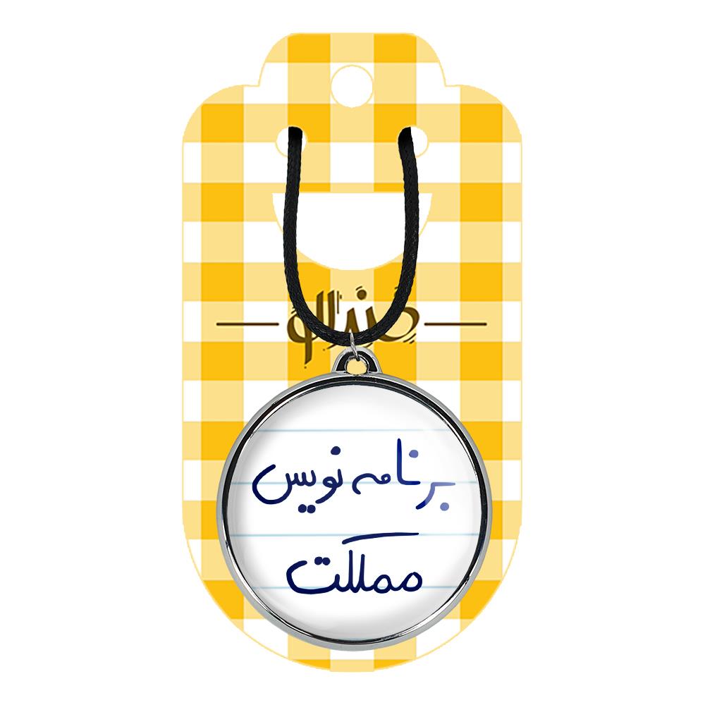 گردنبند خندالو طرح برنامه نویس مملکت ، محصولی جدید و جذاب است که بصورت دو طرفه بوده، و در هر یک از طرفین گردنبند، طرح متفاوتی از یک موضوع چاپ شده است. دور پلاک گردنبند را، رینگی از جنس کروم نقره ای پوشانده که رنگ آن ثابت بوده و باعث هرچه زیباتر شدن گردنبند می شود. روکش براق روی گردنبند، مقاومت بالایی دارد و در مقابل عرق بدن با دوام بوده و با رطوبت های کم، به طرح آسیبی وارد نمی شود. چاپ گردنبند خندالو طرح برنامه نویس مملکت بوسیله بهترین دستگاه های چاپ دیجیتال صورت می گیرد و طرح با شفافیتی مثال زدنی بر روی گردنبند نقش می بندد.