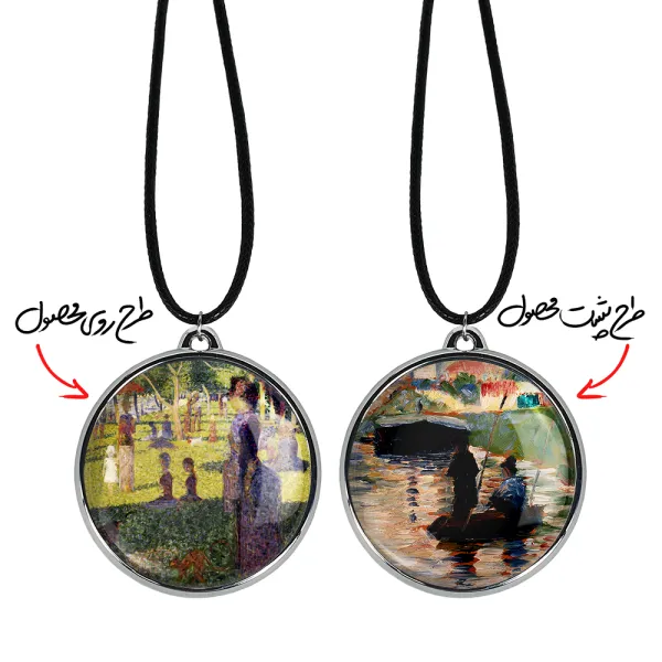 گردنبند خندالو طرح بعد از ظهر یکشنبه ژرژ سورا، محصولی جدید و جذاب است که بصورت دو طرفه بوده، و در هر یک از طرفین گردنبند، طرح متفاوتی از یک موضوع چاپ شده است. دور پلاک گردنبند را، رینگی از جنس کروم نقره ای پوشانده که رنگ آن ثابت بوده و باعث هرچه زیباتر شدن گردنبند می شود. روکش براق روی گردنبند، مقاومت بالایی دارد و در مقابل عرق بدن با دوام بوده و با رطوبت های کم، به طرح آسیبی وارد نمی شود. چاپ گردنبند خندالو طرح بعد از ظهر یکشنبه ژرژ سورا بوسیله بهترین دستگاه های چاپ دیجیتال صورت می گیرد و طرح با شفافیتی مثال زدنی بر روی گردنبند نقش می بندد. جنس بند گردنبند ها نیز تولید شده از چرم صنعتی ست و با ضخامت و مقاومت بالایی که دارد آسیبی نمی بیند. زنجیر بوسیله قفل آبکاری شده به رنگ نقره ای، قابل باز و بسته شدن است که استفاده از آن را راحت تر می کند. همچنین بسته بندی مینیمال و منحصر به فرد خندالو، گردنبند ها را تبدیل به هدیه ای جذاب می کند که با قیمت مناسب و تنوع طرحی بسیار بالایی که از همه موضوعات دارد، میتواند برای هر سلیقه ای خوشحال کننده باشد.