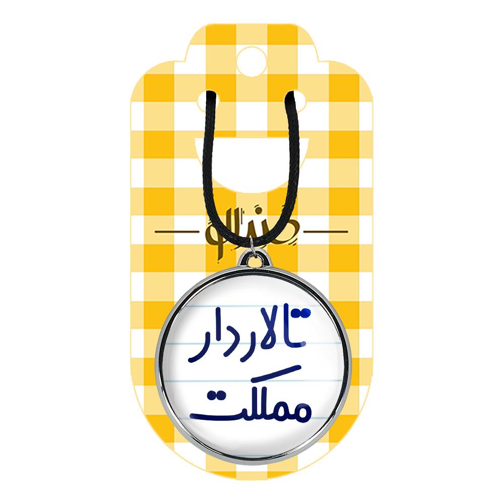 گردنبند خندالو طرح تالاردار مملکت، محصولی جدید و جذاب است که بصورت دو طرفه بوده، و در هر یک از طرفین گردنبند، طرح متفاوتی از یک موضوع چاپ شده است. دور پلاک گردنبند را، رینگی از جنس کروم نقره ای پوشانده که رنگ آن ثابت بوده و باعث هرچه زیباتر شدن گردنبند می شود. روکش براق روی گردنبند، مقاومت بالایی دارد و در مقابل عرق بدن با دوام بوده و با رطوبت های کم، به طرح آسیبی وارد نمی شود. چاپ گردنبند خندالو طرح تالاردار مملکت بوسیله بهترین دستگاه های چاپ دیجیتال صورت می گیرد و طرح با شفافیتی مثال زدنی بر روی گردنبند نقش می بندد. جنس بند گردنبند ها نیز تولید شده از چرم صنعتی ست و با ضخامت و مقاومت بالایی که دارد آسیبی نمی بیند. زنجیر بوسیله قفل آبکاری شده به رنگ نقره ای، قابل باز و بسته شدن است که استفاده از آن را راحت تر می کند. همچنین بسته بندی مینیمال و منحصر به فرد خندالو، گردنبند ها را تبدیل به هدیه ای جذاب می کند که با قیمت مناسب و تنوع طرحی بسیار بالایی که از همه موضوعات دارد، میتواند برای هر سلیقه ای خوشحال کننده باشد.
