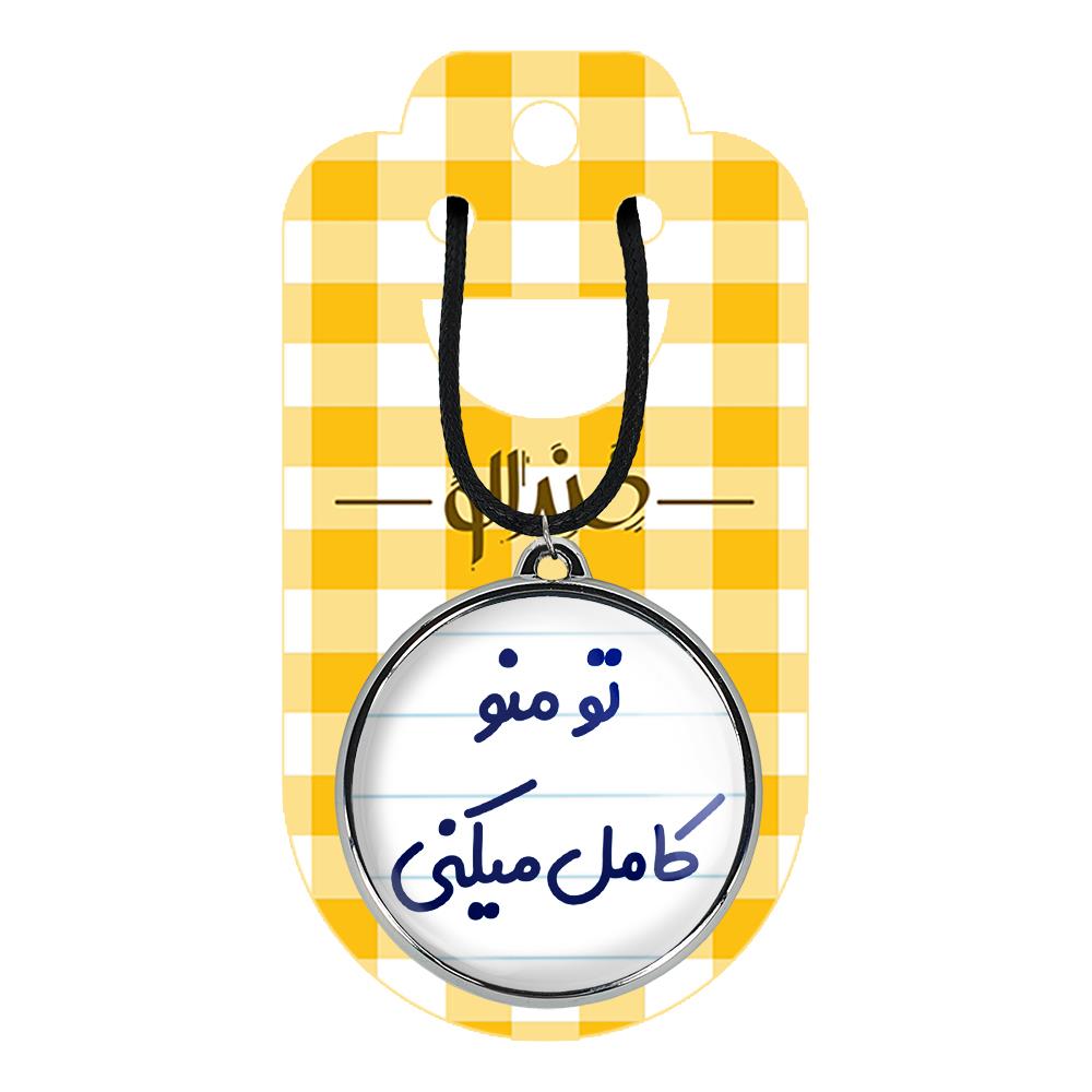 گردنبند خندالو طرح تو منو کامل میکنی، محصولی جدید و جذاب است که بصورت دو طرفه بوده، و در هر یک از طرفین گردنبند، طرح متفاوتی از یک موضوع چاپ شده است. دور پلاک گردنبند را، رینگی از جنس کروم نقره ای پوشانده که رنگ آن ثابت بوده و باعث هرچه زیباتر شدن گردنبند می شود. روکش براق روی گردنبند، مقاومت بالایی دارد و در مقابل عرق بدن با دوام بوده و با رطوبت های کم، به طرح آسیبی وارد نمی شود. چاپ گردنبند خندالو طرح تو منو کامل میکنی بوسیله بهترین دستگاه های چاپ دیجیتال صورت می گیرد و طرح با شفافیتی مثال زدنی بر روی گردنبند نقش می بندد. جنس بند گردنبند ها نیز تولید شده از چرم صنعتی ست و با ضخامت و مقاومت بالایی که دارد آسیبی نمی بیند. زنجیر بوسیله قفل آبکاری شده به رنگ نقره ای، قابل باز و بسته شدن است که استفاده از آن را راحت تر می کند. همچنین بسته بندی مینیمال و منحصر به فرد خندالو، گردنبند ها را تبدیل به هدیه ای جذاب می کند که با قیمت مناسب و تنوع طرحی بسیار بالایی که از همه موضوعات دارد، میتواند برای هر سلیقه ای خوشحال کننده باشد.
