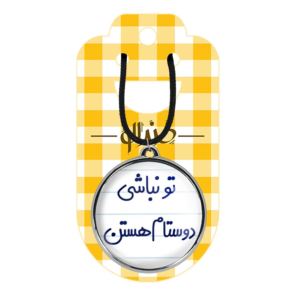 گردنبند خندالو طرح تو نباشی دوستام هستن ، محصولی جدید و جذاب است که بصورت دو طرفه بوده، و در هر یک از طرفین گردنبند، طرح متفاوتی از یک موضوع چاپ شده است. دور پلاک گردنبند را، رینگی از جنس کروم نقره ای پوشانده که رنگ آن ثابت بوده و باعث هرچه زیباتر شدن گردنبند می شود. روکش براق روی گردنبند، مقاومت بالایی دارد و در مقابل عرق بدن با دوام بوده و با رطوبت های کم، به طرح آسیبی وارد نمی شود. چاپ گردنبند خندالو طرح تو نباشی دوستام هستن بوسیله بهترین دستگاه های چاپ دیجیتال صورت می گیرد و طرح با شفافیتی مثال زدنی بر روی گردنبند نقش می بندد. جنس بند گردنبند ها نیز تولید شده از چرم صنعتی ست و با ضخامت و مقاومت بالایی که دارد آسیبی نمی بیند. زنجیر بوسیله قفل آبکاری شده به رنگ نقره ای، قابل باز و بسته شدن است که استفاده از آن را راحت تر می کند. همچنین بسته بندی مینیمال و منحصر به فرد خندالو، گردنبند ها را تبدیل به هدیه ای جذاب می کند که با قیمت مناسب و تنوع طرحی بسیار بالایی که از همه موضوعات دارد، میتواند برای هر سلیقه ای خوشحال کننده باشد.