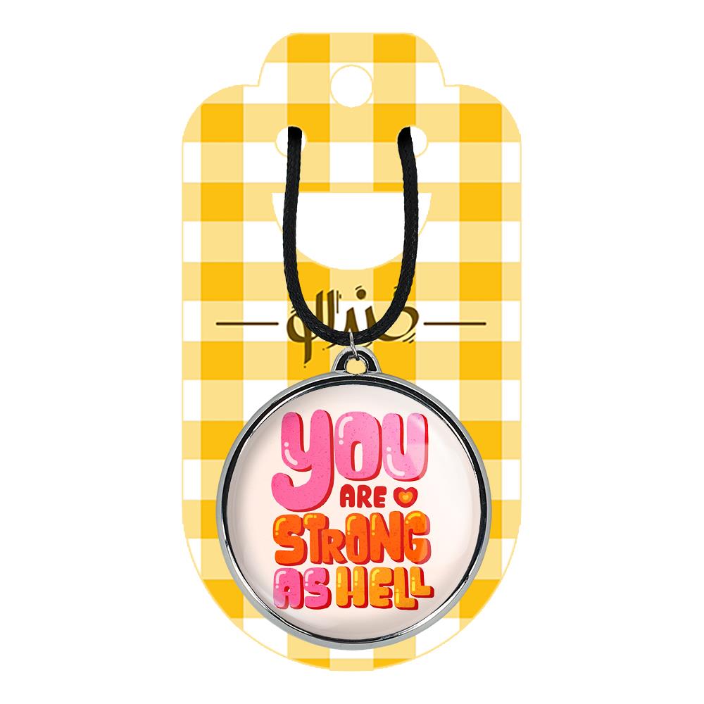 گردنبند خندالو طرح جملات انگیزشی، محصولی جدید و جذاب است که بصورت دو طرفه بوده، و در هر یک از طرفین گردنبند، طرح متفاوتی از یک موضوع چاپ شده است. دور پلاک گردنبند را، رینگی از جنس کروم نقره ای پوشانده که رنگ آن ثابت بوده و باعث هرچه زیباتر شدن گردنبند می شود. روکش براق روی گردنبند، مقاومت بالایی دارد و در مقابل عرق بدن با دوام بوده و با رطوبت های کم، به طرح آسیبی وارد نمی شود. چاپ گردنبند خندالو طرح جملات انگیزشی بوسیله بهترین دستگاه های چاپ دیجیتال صورت می گیرد و طرح با شفافیتی مثال زدنی بر روی گردنبند نقش می بندد.
