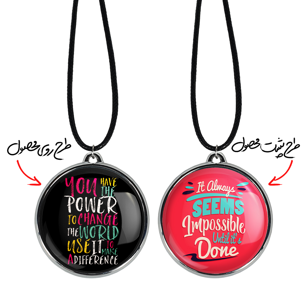 گردنبند خندالو طرح جملات انگیزشی، محصولی جدید و جذاب است که بصورت دو طرفه بوده، و در هر یک از طرفین گردنبند، طرح متفاوتی از یک موضوع چاپ شده است. دور پلاک گردنبند را، رینگی از جنس کروم نقره ای پوشانده که رنگ آن ثابت بوده و باعث هرچه زیباتر شدن گردنبند می شود. روکش براق روی گردنبند، مقاومت بالایی دارد و در مقابل عرق بدن با دوام بوده و با رطوبت های کم، به طرح آسیبی وارد نمی شود. چاپ گردنبند خندالو طرح جملات انگیزشی بوسیله بهترین دستگاه های چاپ دیجیتال صورت می گیرد و طرح با شفافیتی مثال زدنی بر روی گردنبند نقش می بندد.
