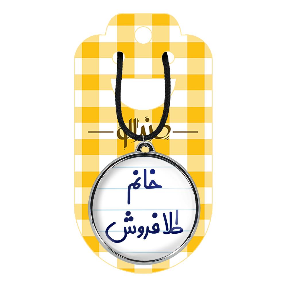 گردنبند خندالو طرح خانم طلافروش، محصولی جدید و جذاب است که بصورت دو طرفه بوده، و در هر یک از طرفین گردنبند، طرح متفاوتی از یک موضوع چاپ شده است. دور پلاک گردنبند را، رینگی از جنس کروم نقره ای پوشانده که رنگ آن ثابت بوده و باعث هرچه زیباتر شدن گردنبند می شود. روکش براق روی گردنبند، مقاومت بالایی دارد و در مقابل عرق بدن با دوام بوده و با رطوبت های کم، به طرح آسیبی وارد نمی شود. چاپ گردنبند خندالو طرح خانم طلافروش بوسیله بهترین دستگاه های چاپ دیجیتال صورت می گیرد و طرح با شفافیتی مثال زدنی بر روی گردنبند نقش می بندد. جنس بند گردنبند ها نیز تولید شده از چرم صنعتی ست و با ضخامت و مقاومت بالایی که دارد آسیبی نمی بیند. زنجیر بوسیله قفل آبکاری شده به رنگ نقره ای، قابل باز و بسته شدن است که استفاده از آن را راحت تر می کند. همچنین بسته بندی مینیمال و منحصر به فرد خندالو، گردنبند ها را تبدیل به هدیه ای جذاب می کند که با قیمت مناسب و تنوع طرحی بسیار بالایی که از همه موضوعات دارد، میتواند برای هر سلیقه ای خوشحال کننده باشد.