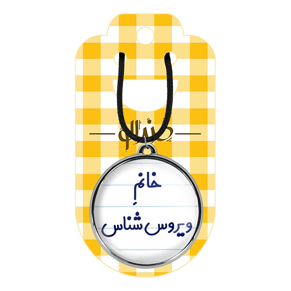 گردنبند خندالو طرح خانم ویروس شناس، محصولی جدید و جذاب است که بصورت دو طرفه بوده، و در هر یک از طرفین گردنبند، طرح متفاوتی از یک موضوع چاپ شده است. دور پلاک گردنبند را، رینگی از جنس کروم نقره ای پوشانده که رنگ آن ثابت بوده و باعث هرچه زیباتر شدن گردنبند می شود. روکش براق روی گردنبند، مقاومت بالایی دارد و در مقابل عرق بدن با دوام بوده و با رطوبت های کم، به طرح آسیبی وارد نمی شود. چاپ گردنبند خندالو طرح خانم ویروس شناس بوسیله بهترین دستگاه های چاپ دیجیتال صورت می گیرد و طرح با شفافیتی مثال زدنی بر روی گردنبند نقش می بندد. جنس بند گردنبند ها نیز تولید شده از چرم صنعتی ست و با ضخامت و مقاومت بالایی که دارد آسیبی نمی بیند. زنجیر بوسیله قفل آبکاری شده به رنگ نقره ای، قابل باز و بسته شدن است که استفاده از آن را راحت تر می کند. همچنین بسته بندی مینیمال و منحصر به فرد خندالو، گردنبند ها را تبدیل به هدیه ای جذاب می کند که با قیمت مناسب و تنوع طرحی بسیار بالایی که از همه موضوعات دارد، میتواند برای هر سلیقه ای خوشحال کننده باشد.