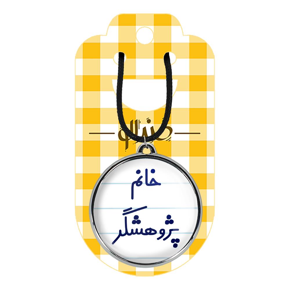 گردنبند خندالو طرح خانم پژوهشگر، محصولی جدید و جذاب است که بصورت دو طرفه بوده، و در هر یک از طرفین گردنبند، طرح متفاوتی از یک موضوع چاپ شده است. دور پلاک گردنبند را، رینگی از جنس کروم نقره ای پوشانده که رنگ آن ثابت بوده و باعث هرچه زیباتر شدن گردنبند می شود. روکش براق روی گردنبند، مقاومت بالایی دارد و در مقابل عرق بدن با دوام بوده و با رطوبت های کم، به طرح آسیبی وارد نمی شود. چاپ گردنبند خندالو طرح خانم پژوهشگر بوسیله بهترین دستگاه های چاپ دیجیتال صورت می گیرد و طرح با شفافیتی مثال زدنی بر روی گردنبند نقش می بندد. جنس بند گردنبند ها نیز تولید شده از چرم صنعتی ست و با ضخامت و مقاومت بالایی که دارد آسیبی نمی بیند. زنجیر بوسیله قفل آبکاری شده به رنگ نقره ای، قابل باز و بسته شدن است که استفاده از آن را راحت تر می کند. همچنین بسته بندی مینیمال و منحصر به فرد خندالو، گردنبند ها را تبدیل به هدیه ای جذاب می کند که با قیمت مناسب و تنوع طرحی بسیار بالایی که از همه موضوعات دارد، میتواند برای هر سلیقه ای خوشحال کننده باشد.