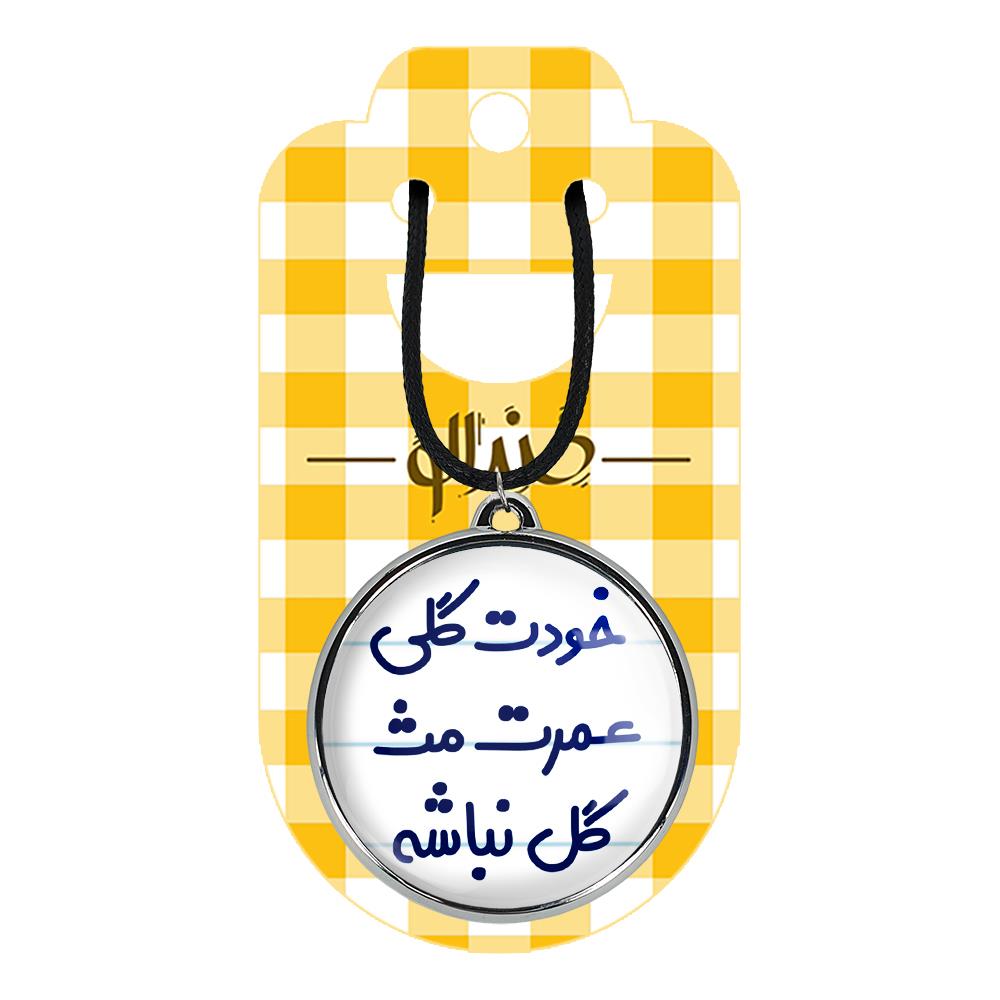 گردنبند خندالو طرح خودت گلی عمرت مث گل نباشه ، محصولی جدید و جذاب است که بصورت دو طرفه بوده، و در هر یک از طرفین گردنبند، طرح متفاوتی از یک موضوع چاپ شده است. دور پلاک گردنبند را، رینگی از جنس کروم نقره ای پوشانده که رنگ آن ثابت بوده و باعث هرچه زیباتر شدن گردنبند می شود. روکش براق روی گردنبند، مقاومت بالایی دارد و در مقابل عرق بدن با دوام بوده و با رطوبت های کم، به طرح آسیبی وارد نمی شود. چاپ گردنبند خندالو طرح خودت گلی عمرت مث گل نباشه بوسیله بهترین دستگاه های چاپ دیجیتال صورت می گیرد و طرح با شفافیتی مثال زدنی بر روی گردنبند نقش می بندد. جنس بند گردنبند ها نیز تولید شده از چرم صنعتی ست و با ضخامت و مقاومت بالایی که دارد آسیبی نمی بیند. زنجیر بوسیله قفل آبکاری شده به رنگ نقره ای، قابل باز و بسته شدن است که استفاده از آن را راحت تر می کند. همچنین بسته بندی مینیمال و منحصر به فرد خندالو، گردنبند ها را تبدیل به هدیه ای جذاب می کند که با قیمت مناسب و تنوع طرحی بسیار بالایی که از همه موضوعات دارد، میتواند برای هر سلیقه ای خوشحال کننده باشد.