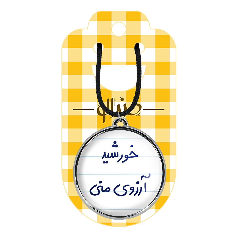 گردنبند خندالو طرح خورشید آرزوی منی ، محصولی جدید و جذاب است که بصورت دو طرفه بوده، و در هر یک از طرفین گردنبند، طرح متفاوتی از یک موضوع چاپ شده است. دور پلاک گردنبند را، رینگی از جنس کروم نقره ای پوشانده که رنگ آن ثابت بوده و باعث هرچه زیباتر شدن گردنبند می شود. روکش براق روی گردنبند، مقاومت بالایی دارد و در مقابل عرق بدن با دوام بوده و با رطوبت های کم، به طرح آسیبی وارد نمی شود. چاپ گردنبند خندالو طرح خورشید آرزوی منی بوسیله بهترین دستگاه های چاپ دیجیتال صورت می گیرد و طرح با شفافیتی مثال زدنی بر روی گردنبند نقش می بندد. جنس بند گردنبند ها نیز تولید شده از چرم صنعتی ست و با ضخامت و مقاومت بالایی که دارد آسیبی نمی بیند. زنجیر بوسیله قفل آبکاری شده به رنگ نقره ای، قابل باز و بسته شدن است که استفاده از آن را راحت تر می کند. همچنین بسته بندی مینیمال و منحصر به فرد خندالو، گردنبند ها را تبدیل به هدیه ای جذاب می کند که با قیمت مناسب و تنوع طرحی بسیار بالایی که از همه موضوعات دارد، میتواند برای هر سلیقه ای خوشحال کننده باشد.