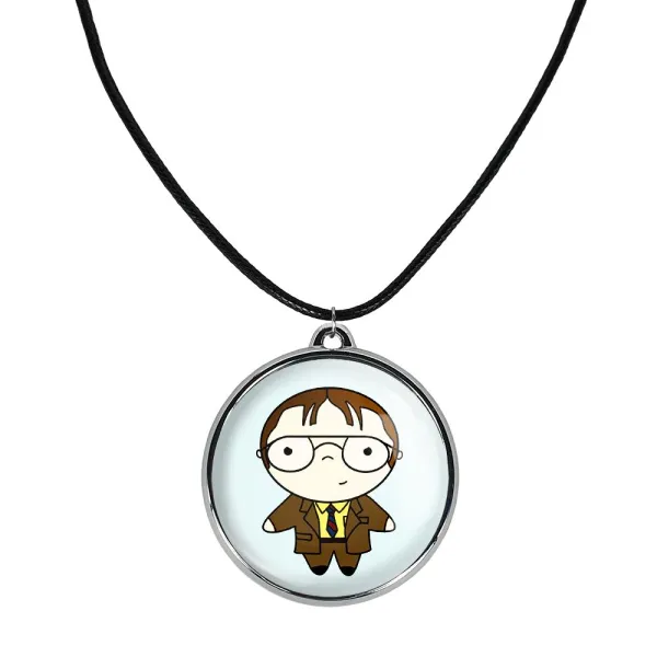 گردنبند خندالو طرح داویت شروت سریال آفیس The Office ، محصولی جدید و جذاب است که بصورت دو طرفه بوده، و در هر یک از طرفین گردنبند، طرح متفاوتی از یک موضوع چاپ شده است. دور پلاک گردنبند را، رینگی از جنس کروم نقره ای پوشانده که رنگ آن ثابت بوده و باعث هرچه زیباتر شدن گردنبند می شود. روکش براق روی گردنبند، مقاومت بالایی دارد و در مقابل عرق بدن با دوام بوده و با رطوبت های کم، به طرح آسیبی وارد نمی شود. چاپ گردنبند خندالو طرح داویت شروت سریال آفیس The Office بوسیله بهترین دستگاه های چاپ دیجیتال صورت می گیرد و طرح با شفافیتی مثال زدنی بر روی گردنبند نقش می بندد.