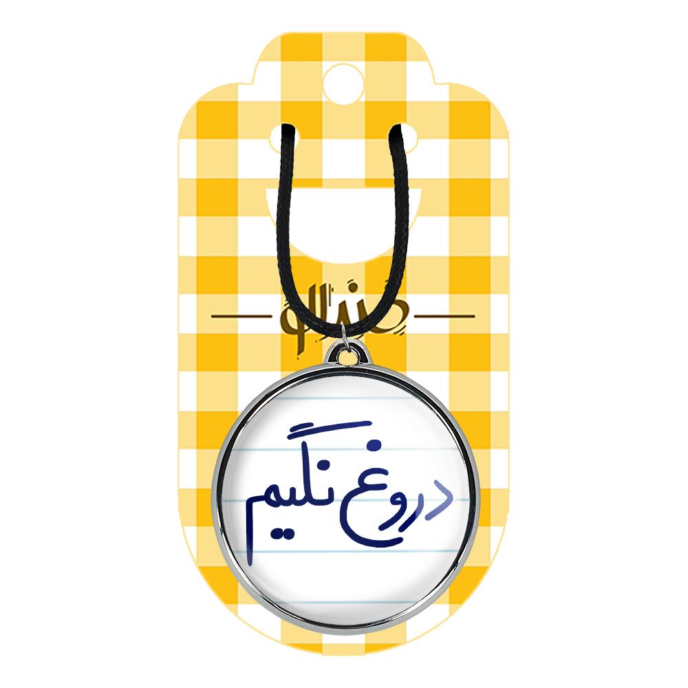 گردنبند خندالو طرح دروغ نگیم ، محصولی جدید و جذاب است که بصورت دو طرفه بوده، و در هر یک از طرفین گردنبند، طرح متفاوتی از یک موضوع چاپ شده است. دور پلاک گردنبند را، رینگی از جنس کروم نقره ای پوشانده که رنگ آن ثابت بوده و باعث هرچه زیباتر شدن گردنبند می شود. روکش براق روی گردنبند، مقاومت بالایی دارد و در مقابل عرق بدن با دوام بوده و با رطوبت های کم، به طرح آسیبی وارد نمی شود. چاپ گردنبند خندالو طرح دروغ نگیم بوسیله بهترین دستگاه های چاپ دیجیتال صورت می گیرد و طرح با شفافیتی مثال زدنی بر روی گردنبند نقش می بندد. جنس بند گردنبند ها نیز تولید شده از چرم صنعتی ست و با ضخامت و مقاومت بالایی که دارد آسیبی نمی بیند. زنجیر بوسیله قفل آبکاری شده به رنگ نقره ای، قابل باز و بسته شدن است که استفاده از آن را راحت تر می کند. همچنین بسته بندی مینیمال و منحصر به فرد خندالو، گردنبند ها را تبدیل به هدیه ای جذاب می کند که با قیمت مناسب و تنوع طرحی بسیار بالایی که از همه موضوعات دارد، میتواند برای هر سلیقه ای خوشحال کننده باشد.