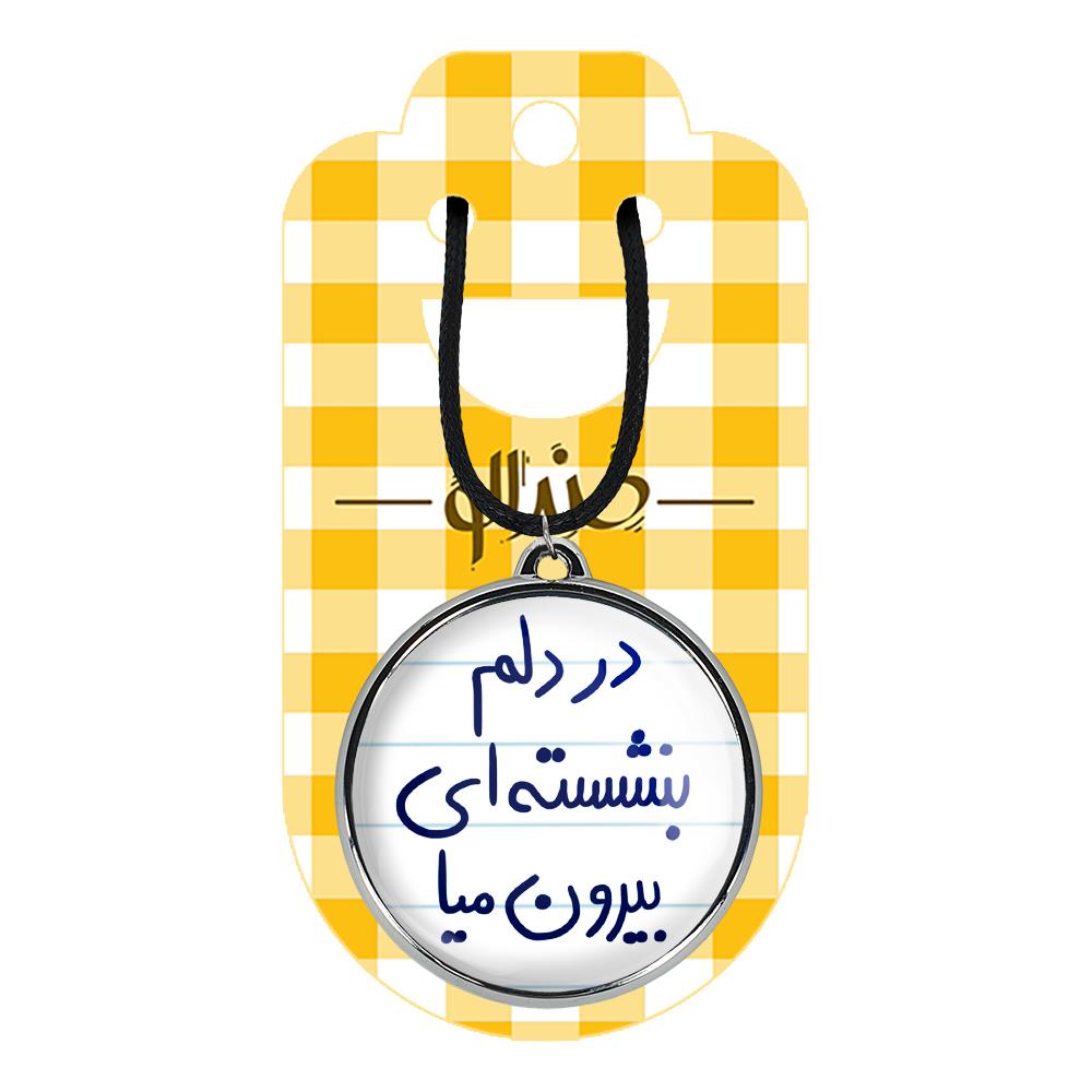 گردنبند خندالو طرح در دلم بنشسته ای بیرون میا ، محصولی جدید و جذاب است که بصورت دو طرفه بوده، و در هر یک از طرفین گردنبند، طرح متفاوتی از یک موضوع چاپ شده است. دور پلاک گردنبند را، رینگی از جنس کروم نقره ای پوشانده که رنگ آن ثابت بوده و باعث هرچه زیباتر شدن گردنبند می شود. روکش براق روی گردنبند، مقاومت بالایی دارد و در مقابل عرق بدن با دوام بوده و با رطوبت های کم، به طرح آسیبی وارد نمی شود. چاپ گردنبند خندالو طرح در دلم بنشسته ای بیرون میا بوسیله بهترین دستگاه های چاپ دیجیتال صورت می گیرد و طرح با شفافیتی مثال زدنی بر روی گردنبند نقش می بندد.