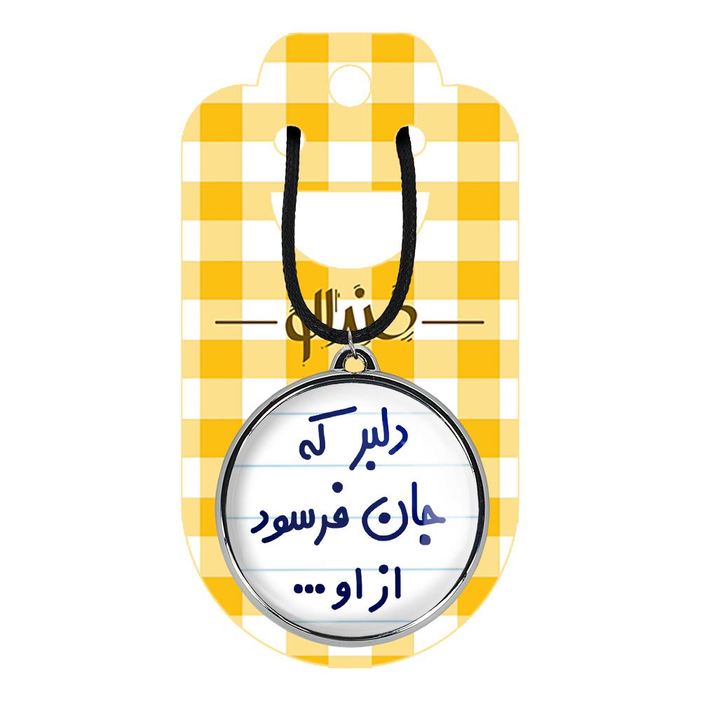 گردنبند خندالو طرح دلبر که جان فرسود از او… ، محصولی جدید و جذاب است که بصورت دو طرفه بوده، و در هر یک از طرفین گردنبند، طرح متفاوتی از یک موضوع چاپ شده است. دور پلاک گردنبند را، رینگی از جنس کروم نقره ای پوشانده که رنگ آن ثابت بوده و باعث هرچه زیباتر شدن گردنبند می شود. روکش براق روی گردنبند، مقاومت بالایی دارد و در مقابل عرق بدن با دوام بوده و با رطوبت های کم، به طرح آسیبی وارد نمی شود. چاپ گردنبند خندالو طرح دلبر که جان فرسود از او… بوسیله بهترین دستگاه های چاپ دیجیتال صورت می گیرد و طرح با شفافیتی مثال زدنی بر روی گردنبند نقش می بندد. جنس بند گردنبند ها نیز تولید شده از چرم صنعتی ست و با ضخامت و مقاومت بالایی که دارد آسیبی نمی بیند. زنجیر بوسیله قفل آبکاری شده به رنگ نقره ای، قابل باز و بسته شدن است که استفاده از آن را راحت تر می کند. همچنین بسته بندی مینیمال و منحصر به فرد خندالو، گردنبند ها را تبدیل به هدیه ای جذاب می کند که با قیمت مناسب و تنوع طرحی بسیار بالایی که از همه موضوعات دارد، میتواند برای هر سلیقه ای خوشحال کننده باشد.