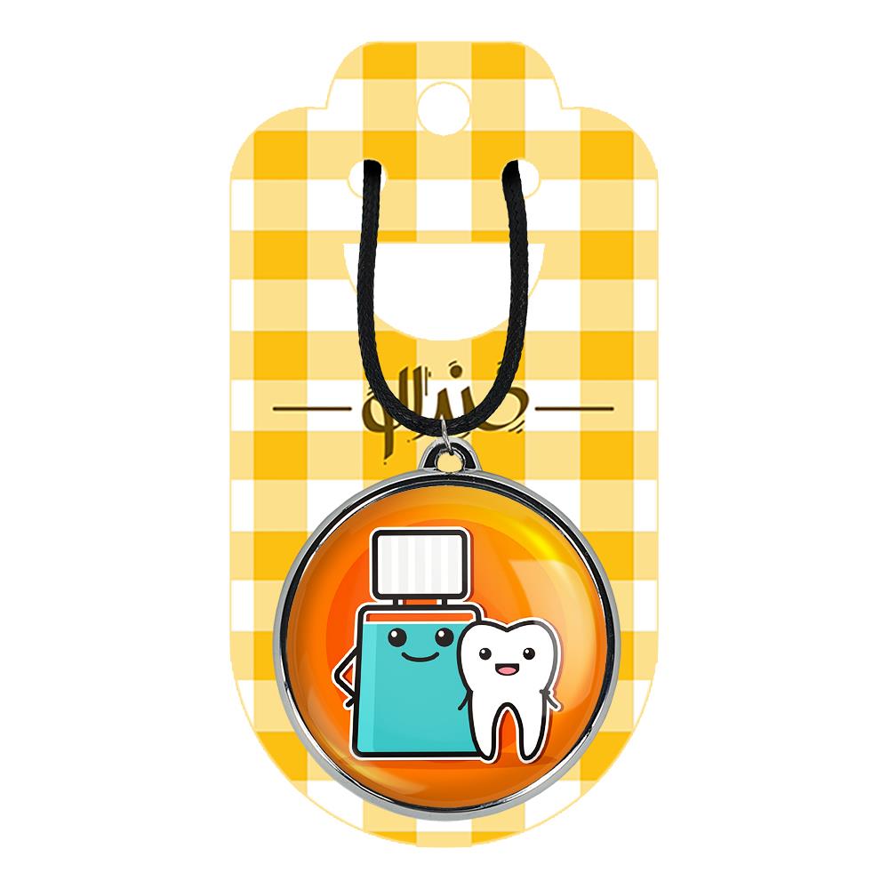 گردنبند خندالو طرح دندان و دندانپزشکی کودکانه، محصولی جدید و جذاب است که بصورت دو طرفه بوده، و در هر یک از طرفین گردنبند، طرح متفاوتی از یک موضوع چاپ شده است. دور پلاک گردنبند را، رینگی از جنس کروم نقره ای پوشانده که رنگ آن ثابت بوده و باعث هرچه زیباتر شدن گردنبند می شود. روکش براق روی گردنبند، مقاومت بالایی دارد و در مقابل عرق بدن با دوام بوده و با رطوبت های کم، به طرح آسیبی وارد نمی شود. چاپ گردنبند خندالو طرح دندان و دندانپزشکی کودکانه بوسیله بهترین دستگاه های چاپ دیجیتال صورت می گیرد و طرح با شفافیتی مثال زدنی بر روی گردنبند نقش می بندد.