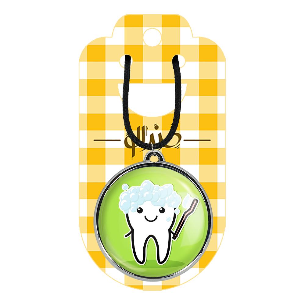 گردنبند خندالو طرح دندان و دندانپزشکی کودکانه، محصولی جدید و جذاب است که بصورت دو طرفه بوده، و در هر یک از طرفین گردنبند، طرح متفاوتی از یک موضوع چاپ شده است. دور پلاک گردنبند را، رینگی از جنس کروم نقره ای پوشانده که رنگ آن ثابت بوده و باعث هرچه زیباتر شدن گردنبند می شود. روکش براق روی گردنبند، مقاومت بالایی دارد و در مقابل عرق بدن با دوام بوده و با رطوبت های کم، به طرح آسیبی وارد نمی شود. چاپ گردنبند خندالو طرح دندان و دندانپزشکی کودکانه بوسیله بهترین دستگاه های چاپ دیجیتال صورت می گیرد و طرح با شفافیتی مثال زدنی بر روی گردنبند نقش می بندد.