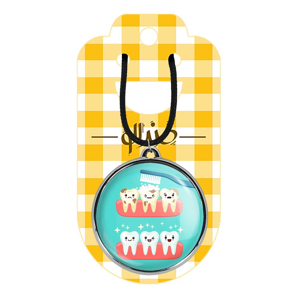 گردنبند خندالو طرح دندان و دندانپزشکی کودکانه، محصولی جدید و جذاب است که بصورت دو طرفه بوده، و در هر یک از طرفین گردنبند، طرح متفاوتی از یک موضوع چاپ شده است. دور پلاک گردنبند را، رینگی از جنس کروم نقره ای پوشانده که رنگ آن ثابت بوده و باعث هرچه زیباتر شدن گردنبند می شود. روکش براق روی گردنبند، مقاومت بالایی دارد و در مقابل عرق بدن با دوام بوده و با رطوبت های کم، به طرح آسیبی وارد نمی شود. چاپ گردنبند خندالو طرح دندان و دندانپزشکی کودکانه بوسیله بهترین دستگاه های چاپ دیجیتال صورت می گیرد و طرح با شفافیتی مثال زدنی بر روی گردنبند نقش می بندد.