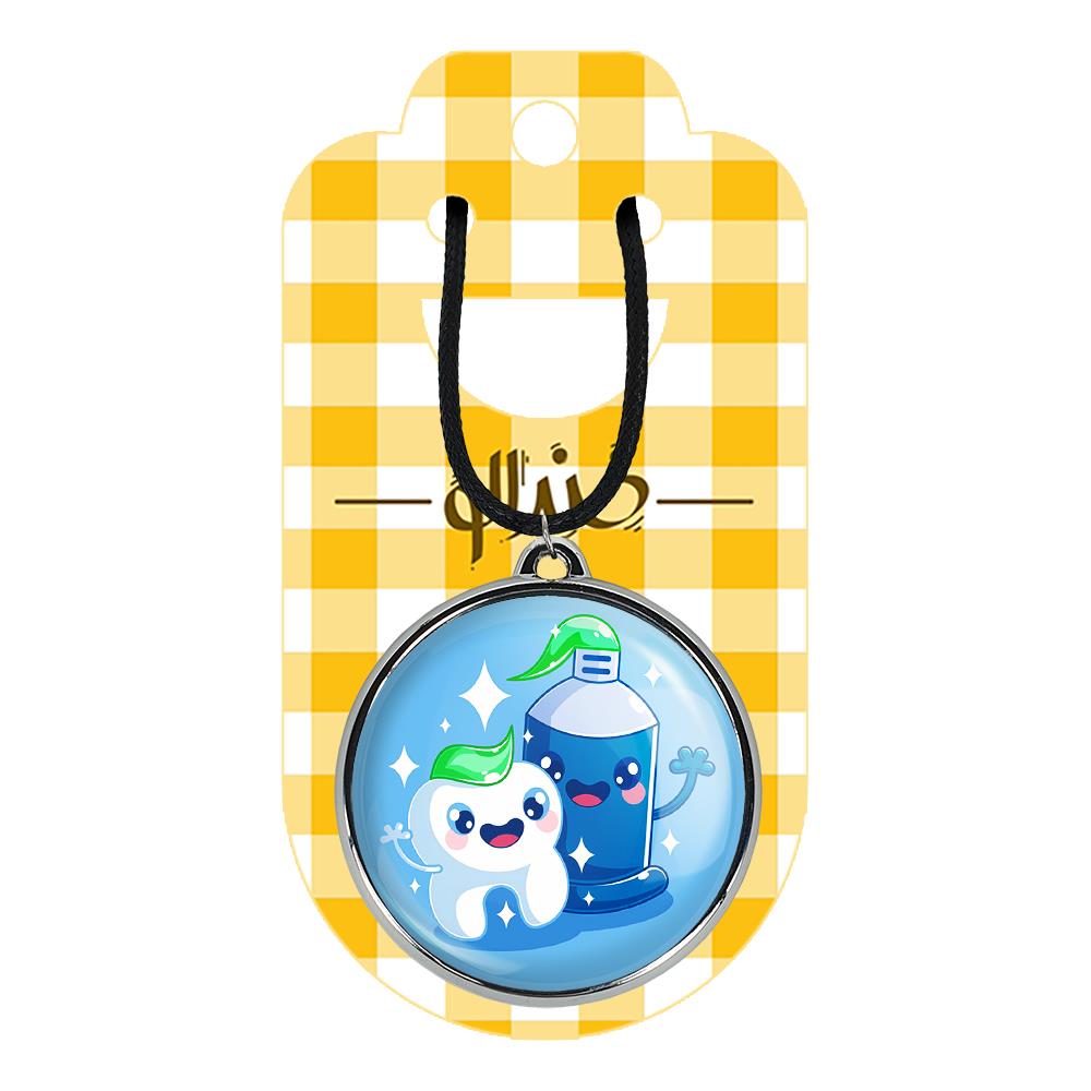 گردنبند خندالو طرح دندان و دندانپزشکی کودکانه، محصولی جدید و جذاب است که بصورت دو طرفه بوده، و در هر یک از طرفین گردنبند، طرح متفاوتی از یک موضوع چاپ شده است. دور پلاک گردنبند را، رینگی از جنس کروم نقره ای پوشانده که رنگ آن ثابت بوده و باعث هرچه زیباتر شدن گردنبند می شود. روکش براق روی گردنبند، مقاومت بالایی دارد و در مقابل عرق بدن با دوام بوده و با رطوبت های کم، به طرح آسیبی وارد نمی شود. چاپ گردنبند خندالو طرح دندان و دندانپزشکی کودکانه بوسیله بهترین دستگاه های چاپ دیجیتال صورت می گیرد و طرح با شفافیتی مثال زدنی بر روی گردنبند نقش می بندد.