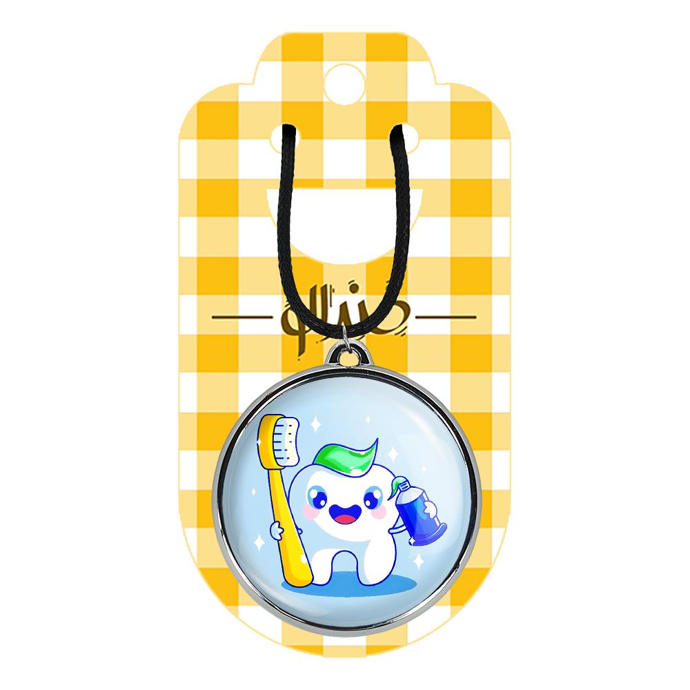 گردنبند خندالو طرح دندان و دندانپزشکی کودکانه، محصولی جدید و جذاب است که بصورت دو طرفه بوده، و در هر یک از طرفین گردنبند، طرح متفاوتی از یک موضوع چاپ شده است. دور پلاک گردنبند را، رینگی از جنس کروم نقره ای پوشانده که رنگ آن ثابت بوده و باعث هرچه زیباتر شدن گردنبند می شود. روکش براق روی گردنبند، مقاومت بالایی دارد و در مقابل عرق بدن با دوام بوده و با رطوبت های کم، به طرح آسیبی وارد نمی شود. چاپ گردنبند خندالو طرح دندان و دندانپزشکی کودکانه بوسیله بهترین دستگاه های چاپ دیجیتال صورت می گیرد و طرح با شفافیتی مثال زدنی بر روی گردنبند نقش می بندد.