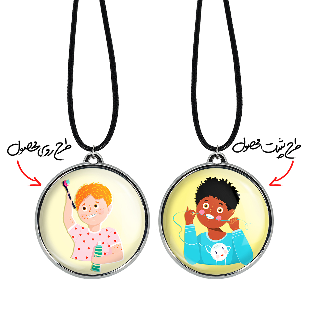 گردنبند خندالو طرح دندان و دندانپزشکی کودکانه، محصولی جدید و جذاب است که بصورت دو طرفه بوده، و در هر یک از طرفین گردنبند، طرح متفاوتی از یک موضوع چاپ شده است. دور پلاک گردنبند را، رینگی از جنس کروم نقره ای پوشانده که رنگ آن ثابت بوده و باعث هرچه زیباتر شدن گردنبند می شود. روکش براق روی گردنبند، مقاومت بالایی دارد و در مقابل عرق بدن با دوام بوده و با رطوبت های کم، به طرح آسیبی وارد نمی شود. چاپ گردنبند خندالو طرح دندان و دندانپزشکی کودکانه بوسیله بهترین دستگاه های چاپ دیجیتال صورت می گیرد و طرح با شفافیتی مثال زدنی بر روی گردنبند نقش می بندد.