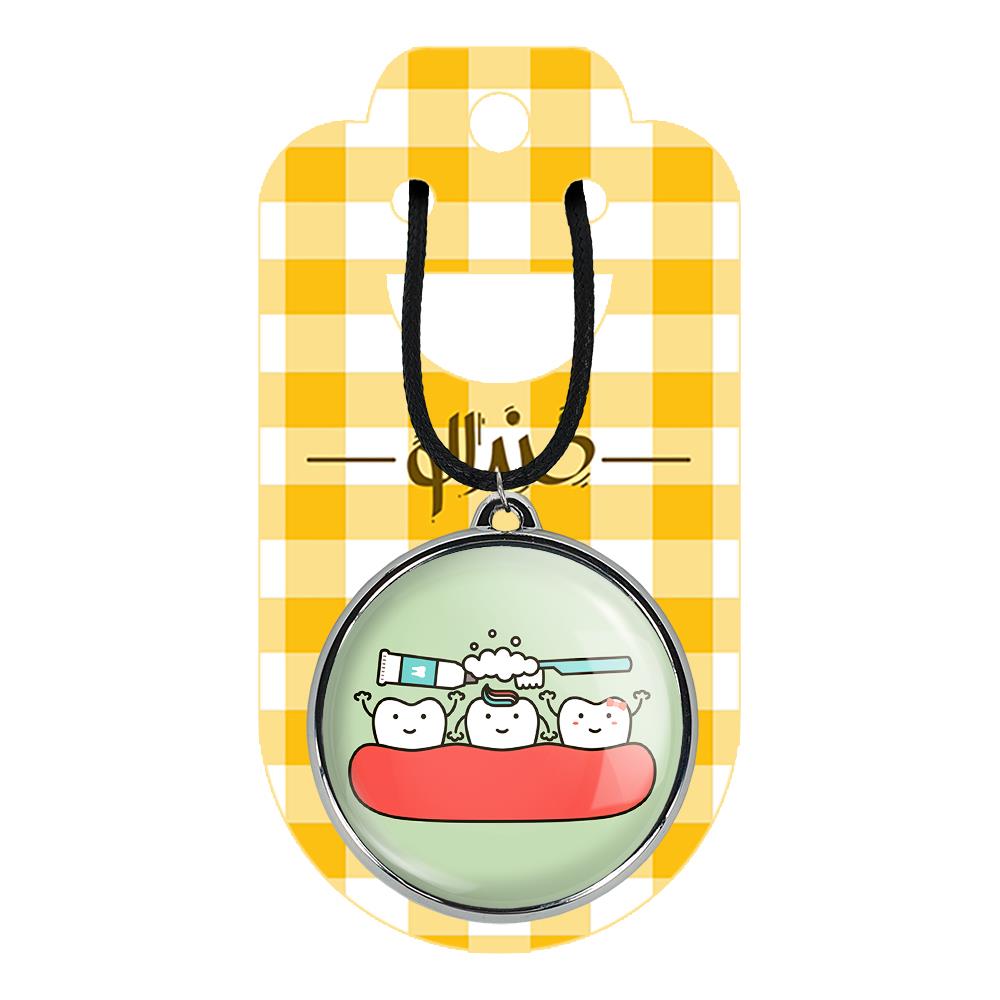 گردنبند خندالو طرح دندان و دندانپزشکی کودکانه، محصولی جدید و جذاب است که بصورت دو طرفه بوده، و در هر یک از طرفین گردنبند، طرح متفاوتی از یک موضوع چاپ شده است. دور پلاک گردنبند را، رینگی از جنس کروم نقره ای پوشانده که رنگ آن ثابت بوده و باعث هرچه زیباتر شدن گردنبند می شود. روکش براق روی گردنبند، مقاومت بالایی دارد و در مقابل عرق بدن با دوام بوده و با رطوبت های کم، به طرح آسیبی وارد نمی شود. چاپ گردنبند خندالو طرح دندان و دندانپزشکی کودکانه بوسیله بهترین دستگاه های چاپ دیجیتال صورت می گیرد و طرح با شفافیتی مثال زدنی بر روی گردنبند نقش می بندد. جنس بند گردنبند ها نیز تولید شده از چرم صنعتی ست و با ضخامت و مقاومت بالایی که دارد آسیبی نمی بیند. زنجیر بوسیله قفل آبکاری شده به رنگ نقره ای، قابل باز و بسته شدن است که استفاده از آن را راحت تر می کند. همچنین بسته بندی مینیمال و منحصر به فرد خندالو، گردنبند ها را تبدیل به هدیه ای جذاب می کند که با قیمت مناسب و تنوع طرحی بسیار بالایی که از همه موضوعات دارد، میتواند برای هر سلیقه ای خوشحال کننده باشد.