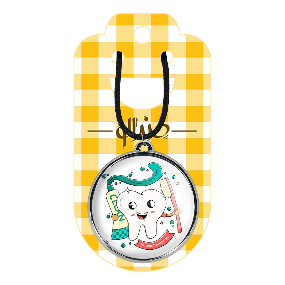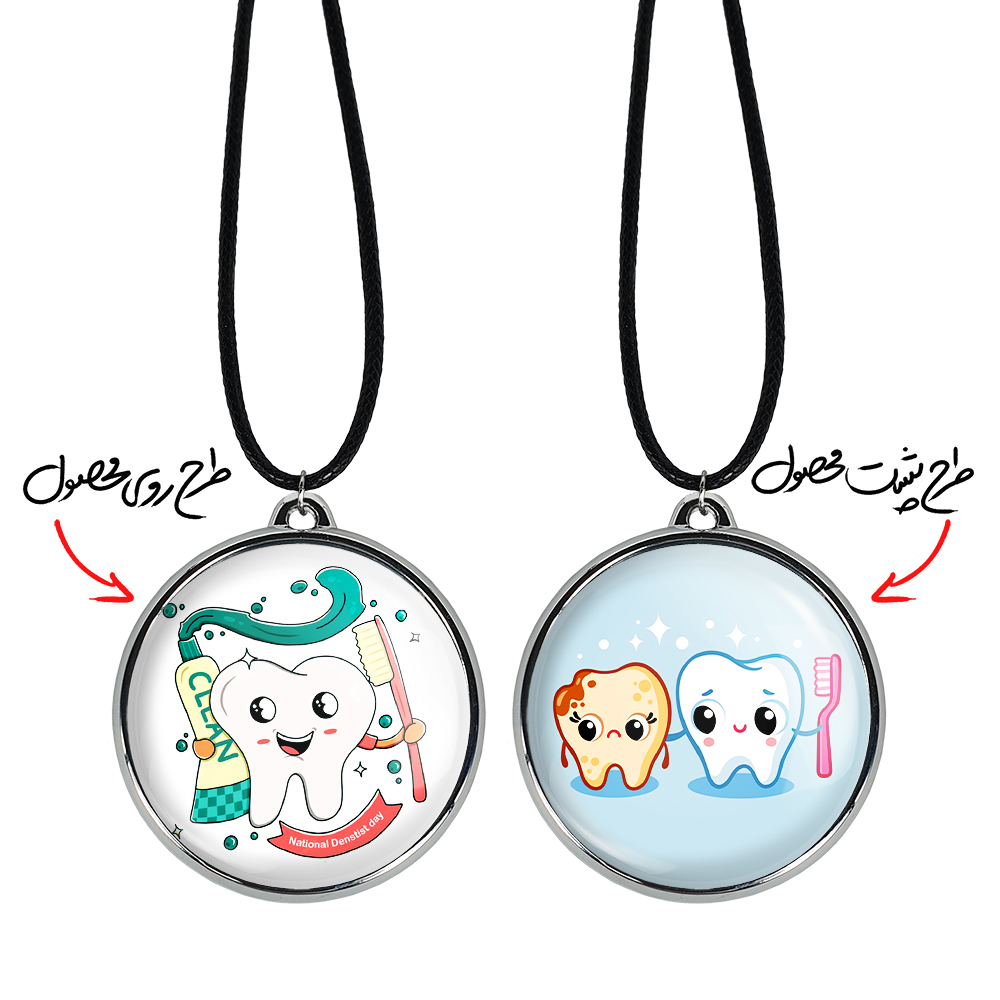 گردنبند خندالو طرح دندان و دندانپزشکی کودکانه، محصولی جدید و جذاب است که بصورت دو طرفه بوده، و در هر یک از طرفین گردنبند، طرح متفاوتی از یک موضوع چاپ شده است. دور پلاک گردنبند را، رینگی از جنس کروم نقره ای پوشانده که رنگ آن ثابت بوده و باعث هرچه زیباتر شدن گردنبند می شود. روکش براق روی گردنبند، مقاومت بالایی دارد و در مقابل عرق بدن با دوام بوده و با رطوبت های کم، به طرح آسیبی وارد نمی شود. چاپ گردنبند خندالو طرح دندان و دندانپزشکی کودکانه بوسیله بهترین دستگاه های چاپ دیجیتال صورت می گیرد و طرح با شفافیتی مثال زدنی بر روی گردنبند نقش می بندد.