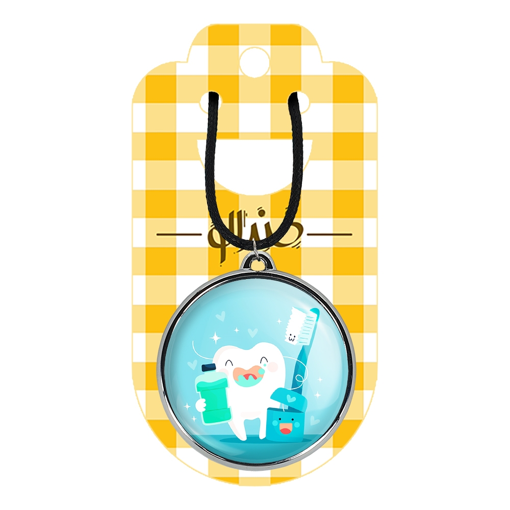 گردنبند خندالو طرح دندان و دندان پزشکی کودکانه، محصولی جدید و جذاب است که بصورت دو طرفه بوده، و در هر یک از طرفین گردنبند، طرح متفاوتی از یک موضوع چاپ شده است. دور پلاک گردنبند را، رینگی از جنس کروم نقره ای پوشانده که رنگ آن ثابت بوده و باعث هرچه زیباتر شدن گردنبند می شود. روکش براق روی گردنبند، مقاومت بالایی دارد و در مقابل عرق بدن با دوام بوده و با رطوبت های کم، به طرح آسیبی وارد نمی شود. چاپ گردنبند خندالو طرح دندان و دندان پزشکی کودکانه بوسیله بهترین دستگاه های چاپ دیجیتال صورت می گیرد و طرح با شفافیتی مثال زدنی بر روی گردنبند نقش می بندد.