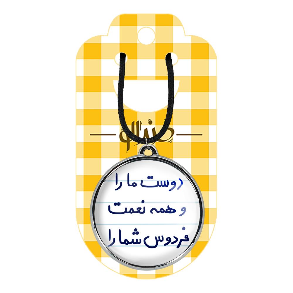گردنبند خندالو طرح دوست ما را و همه نعمت فردوس شما را ، محصولی جدید و جذاب است که بصورت دو طرفه بوده، و در هر یک از طرفین گردنبند، طرح متفاوتی از یک موضوع چاپ شده است. دور پلاک گردنبند را، رینگی از جنس کروم نقره ای پوشانده که رنگ آن ثابت بوده و باعث هرچه زیباتر شدن گردنبند می شود. روکش براق روی گردنبند، مقاومت بالایی دارد و در مقابل عرق بدن با دوام بوده و با رطوبت های کم، به طرح آسیبی وارد نمی شود. چاپ گردنبند خندالو طرح دوست ما را و همه نعمت فردوس شما را بوسیله بهترین دستگاه های چاپ دیجیتال صورت می گیرد و طرح با شفافیتی مثال زدنی بر روی گردنبند نقش می بندد. جنس بند گردنبند ها نیز تولید شده از چرم صنعتی ست و با ضخامت و مقاومت بالایی که دارد آسیبی نمی بیند. زنجیر بوسیله قفل آبکاری شده به رنگ نقره ای، قابل باز و بسته شدن است که استفاده از آن را راحت تر می کند. همچنین بسته بندی مینیمال و منحصر به فرد خندالو، گردنبند ها را تبدیل به هدیه ای جذاب می کند که با قیمت مناسب و تنوع طرحی بسیار بالایی که از همه موضوعات دارد، میتواند برای هر سلیقه ای خوشحال کننده باشد.