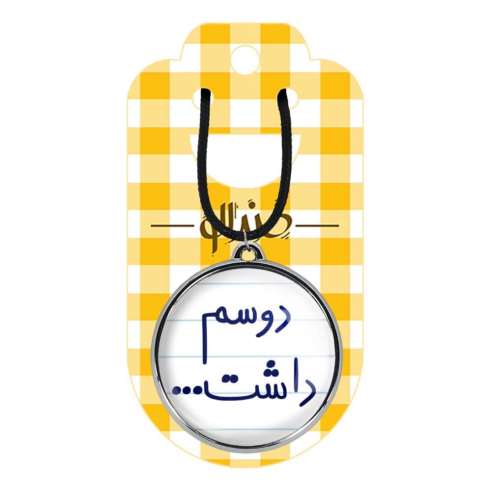 گردنبند خندالو طرح دوسم داشت ، محصولی جدید و جذاب است که بصورت دو طرفه بوده، و در هر یک از طرفین گردنبند، طرح متفاوتی از یک موضوع چاپ شده است. دور پلاک گردنبند را، رینگی از جنس کروم نقره ای پوشانده که رنگ آن ثابت بوده و باعث هرچه زیباتر شدن گردنبند می شود. روکش براق روی گردنبند، مقاومت بالایی دارد و در مقابل عرق بدن با دوام بوده و با رطوبت های کم، به طرح آسیبی وارد نمی شود. چاپ گردنبند خندالو طرح دوسم داشت بوسیله بهترین دستگاه های چاپ دیجیتال صورت می گیرد و طرح با شفافیتی مثال زدنی بر روی گردنبند نقش می بندد. جنس بند گردنبند ها نیز تولید شده از چرم صنعتی ست و با ضخامت و مقاومت بالایی که دارد آسیبی نمی بیند. زنجیر بوسیله قفل آبکاری شده به رنگ نقره ای، قابل باز و بسته شدن است که استفاده از آن را راحت تر می کند. همچنین بسته بندی مینیمال و منحصر به فرد خندالو، گردنبند ها را تبدیل به هدیه ای جذاب می کند که با قیمت مناسب و تنوع طرحی بسیار بالایی که از همه موضوعات دارد، میتواند برای هر سلیقه ای خوشحال کننده باشد.