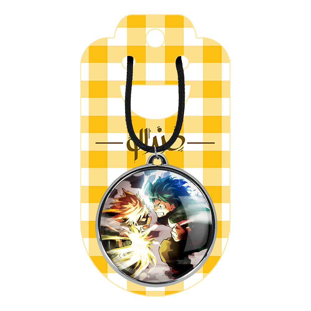 گردنبند خندالو طرح دکو و باکوگو انیمه آکادمی قهرمان من My Hero Academia ، محصولی جدید و جذاب است که بصورت دو طرفه بوده، و در هر یک از طرفین گردنبند، طرح متفاوتی از یک موضوع چاپ شده است. دور پلاک گردنبند را، رینگی از جنس کروم نقره ای پوشانده که رنگ آن ثابت بوده و باعث هرچه زیباتر شدن گردنبند می شود. روکش براق روی گردنبند، مقاومت بالایی دارد و در مقابل عرق بدن با دوام بوده و با رطوبت های کم، به طرح آسیبی وارد نمی شود. چاپ گردنبند خندالو طرح دکو و باکوگو انیمه آکادمی قهرمان من My Hero Academia بوسیله بهترین دستگاه های چاپ دیجیتال صورت می گیرد و طرح با شفافیتی مثال زدنی بر روی گردنبند نقش می بندد. جنس بند گردنبند ها نیز تولید شده از چرم صنعتی ست و با ضخامت و مقاومت بالایی که دارد آسیبی نمی بیند. زنجیر بوسیله قفل آبکاری شده به رنگ نقره ای، قابل باز و بسته شدن است که استفاده از آن را راحت تر می کند. همچنین بسته بندی مینیمال و منحصر به فرد خندالو، گردنبند ها را تبدیل به هدیه ای جذاب می کند که با قیمت مناسب و تنوع طرحی بسیار بالایی که از همه موضوعات دارد، میتواند برای هر سلیقه ای خوشحال کننده باشد.