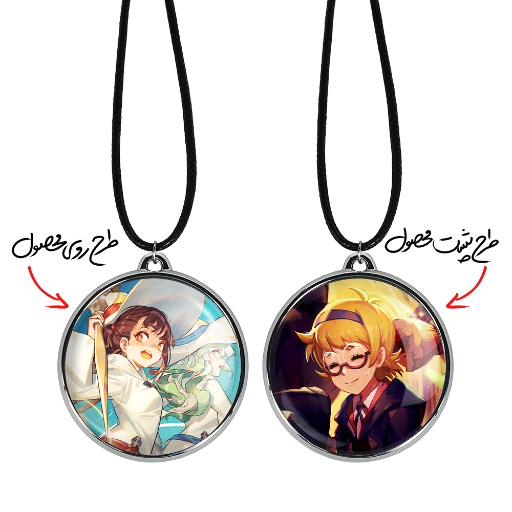 گردنبند خندالو طرح دیانا و اکو انیمه جادوگران کوچک Little Witch Academia ، محصولی جدید و جذاب است که بصورت دو طرفه بوده، و در هر یک از طرفین گردنبند، طرح متفاوتی از یک موضوع چاپ شده است. دور پلاک گردنبند را، رینگی از جنس کروم نقره ای پوشانده که رنگ آن ثابت بوده و باعث هرچه زیباتر شدن گردنبند می شود. روکش براق روی گردنبند، مقاومت بالایی دارد و در مقابل عرق بدن با دوام بوده و با رطوبت های کم، به طرح آسیبی وارد نمی شود. چاپ گردنبند خندالو طرح دیانا و اکو انیمه جادوگران کوچک Little Witch Academia بوسیله بهترین دستگاه های چاپ دیجیتال صورت می گیرد و طرح با شفافیتی مثال زدنی بر روی گردنبند نقش می بندد. جنس بند گردنبند ها نیز تولید شده از چرم صنعتی ست و با ضخامت و مقاومت بالایی که دارد آسیبی نمی بیند. زنجیر بوسیله قفل آبکاری شده به رنگ نقره ای، قابل باز و بسته شدن است که استفاده از آن را راحت تر می کند. همچنین بسته بندی مینیمال و منحصر به فرد خندالو، گردنبند ها را تبدیل به هدیه ای جذاب می کند که با قیمت مناسب و تنوع طرحی بسیار بالایی که از همه موضوعات دارد، میتواند برای هر سلیقه ای خوشحال کننده باشد.