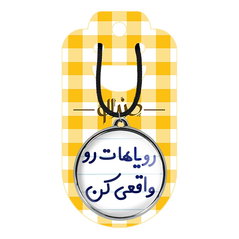 گردنبند خندالو طرح رویاهات رو واقعی کن ، محصولی جدید و جذاب است که بصورت دو طرفه بوده، و در هر یک از طرفین گردنبند، طرح متفاوتی از یک موضوع چاپ شده است. دور پلاک گردنبند را، رینگی از جنس کروم نقره ای پوشانده که رنگ آن ثابت بوده و باعث هرچه زیباتر شدن گردنبند می شود. روکش براق روی گردنبند، مقاومت بالایی دارد و در مقابل عرق بدن با دوام بوده و با رطوبت های کم، به طرح آسیبی وارد نمی شود. چاپ گردنبند خندالو طرح رویاهات رو واقعی کن بوسیله بهترین دستگاه های چاپ دیجیتال صورت می گیرد و طرح با شفافیتی مثال زدنی بر روی گردنبند نقش می بندد. جنس بند گردنبند ها نیز تولید شده از چرم صنعتی ست و با ضخامت و مقاومت بالایی که دارد آسیبی نمی بیند. زنجیر بوسیله قفل آبکاری شده به رنگ نقره ای، قابل باز و بسته شدن است که استفاده از آن را راحت تر می کند. همچنین بسته بندی مینیمال و منحصر به فرد خندالو، گردنبند ها را تبدیل به هدیه ای جذاب می کند که با قیمت مناسب و تنوع طرحی بسیار بالایی که از همه موضوعات دارد، میتواند برای هر سلیقه ای خوشحال کننده باشد.
